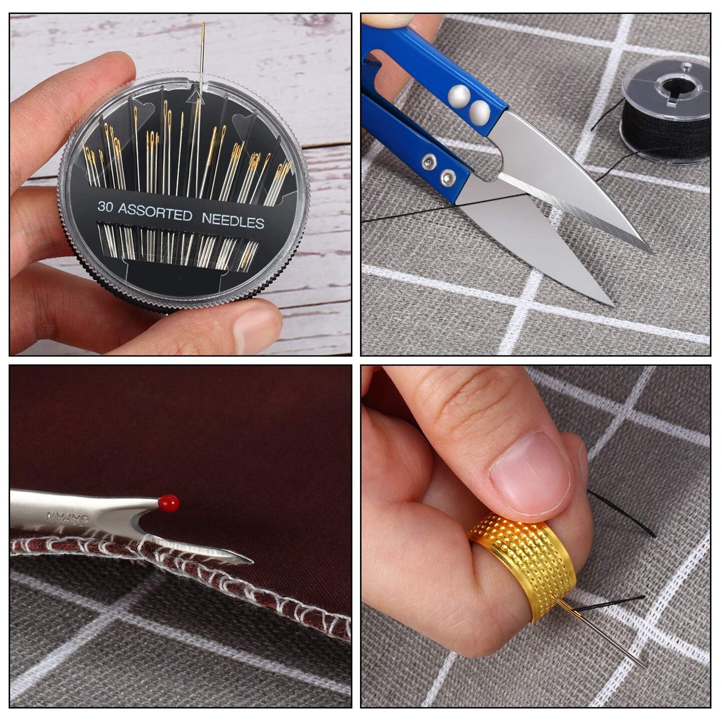 Mudder 46 Pieces Sewing Tools Kit, Includes 9 Automatic Needle Threading Device, 30 Self-Threading Needle, 3 Seam Ripper, 2 Thimble, Sewing Scissor and Velvet Bag