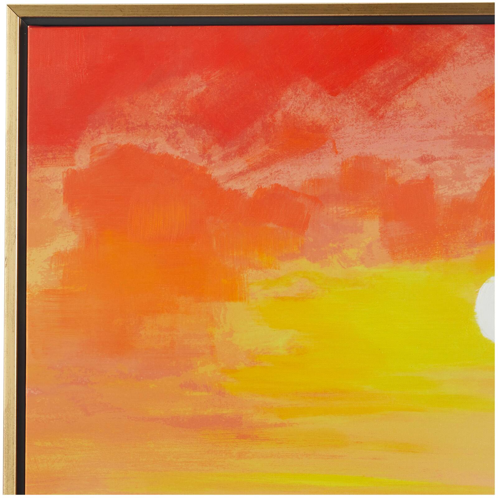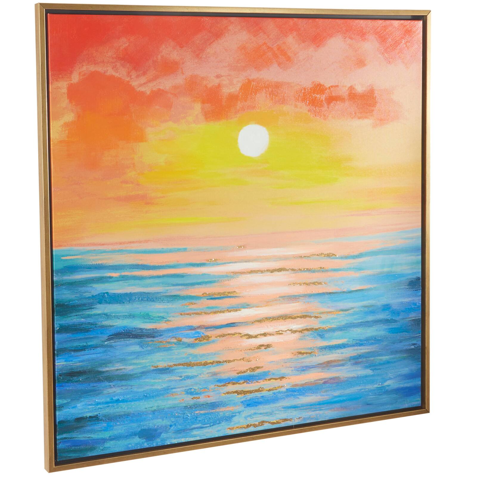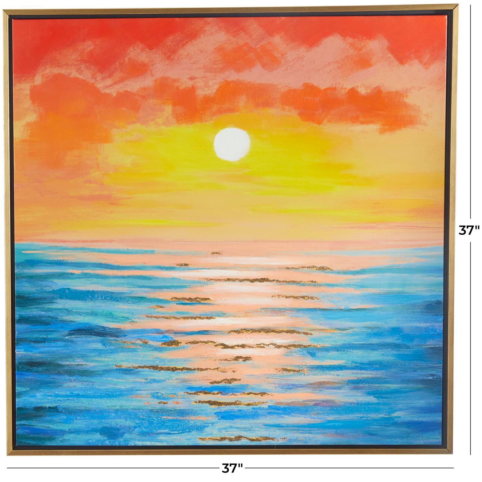 Multi Colored Canvas Handmade Ocean Sunset Landscape Framed Wall Art with Gold Frame 37" x 1" x 37"