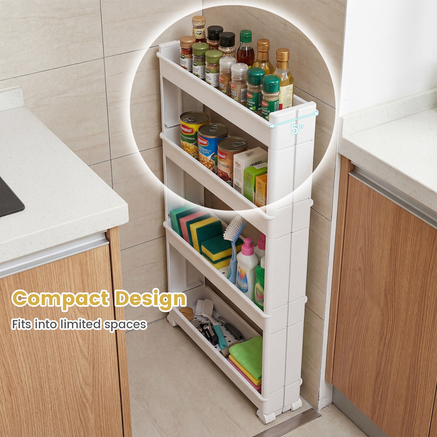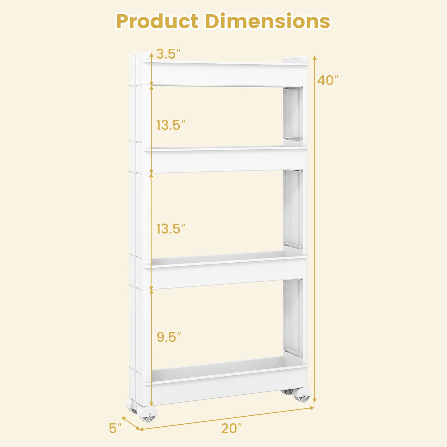 Multi functional 4-Tier Slim Storage Trolley with Removable Trays