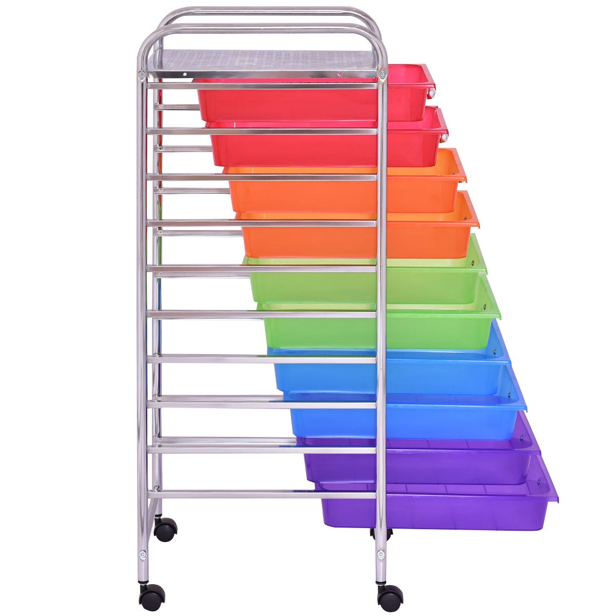 Multi-Color 10-Drawer Storage Trolley Cart with Chrome Steel Frame and Swivel Casters