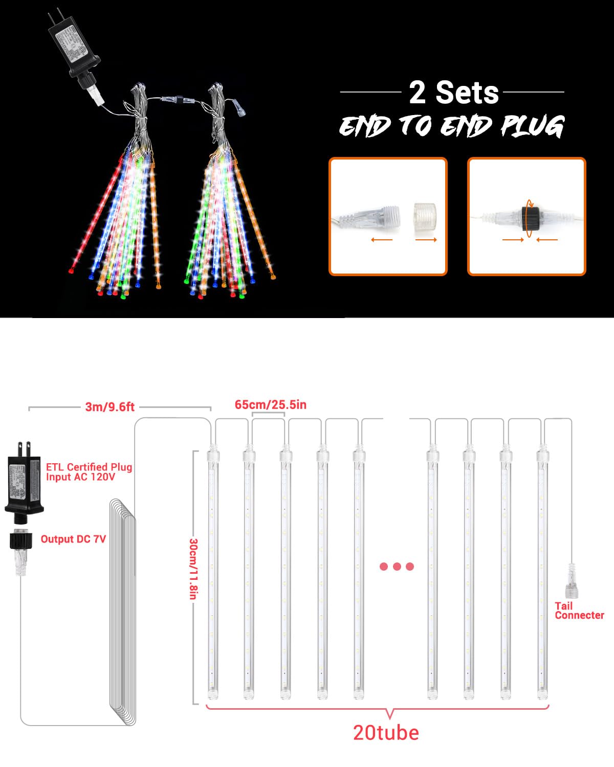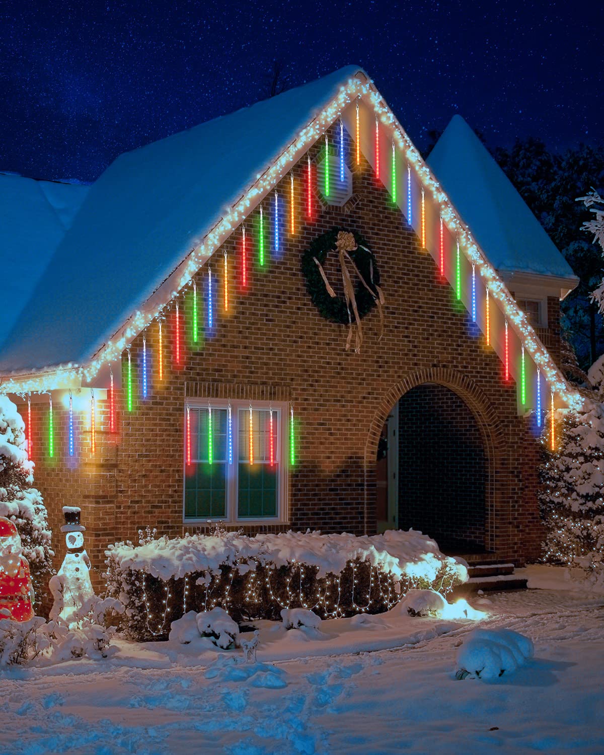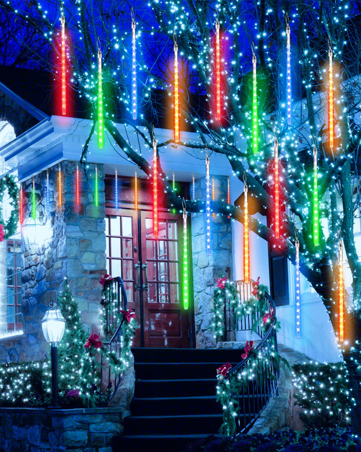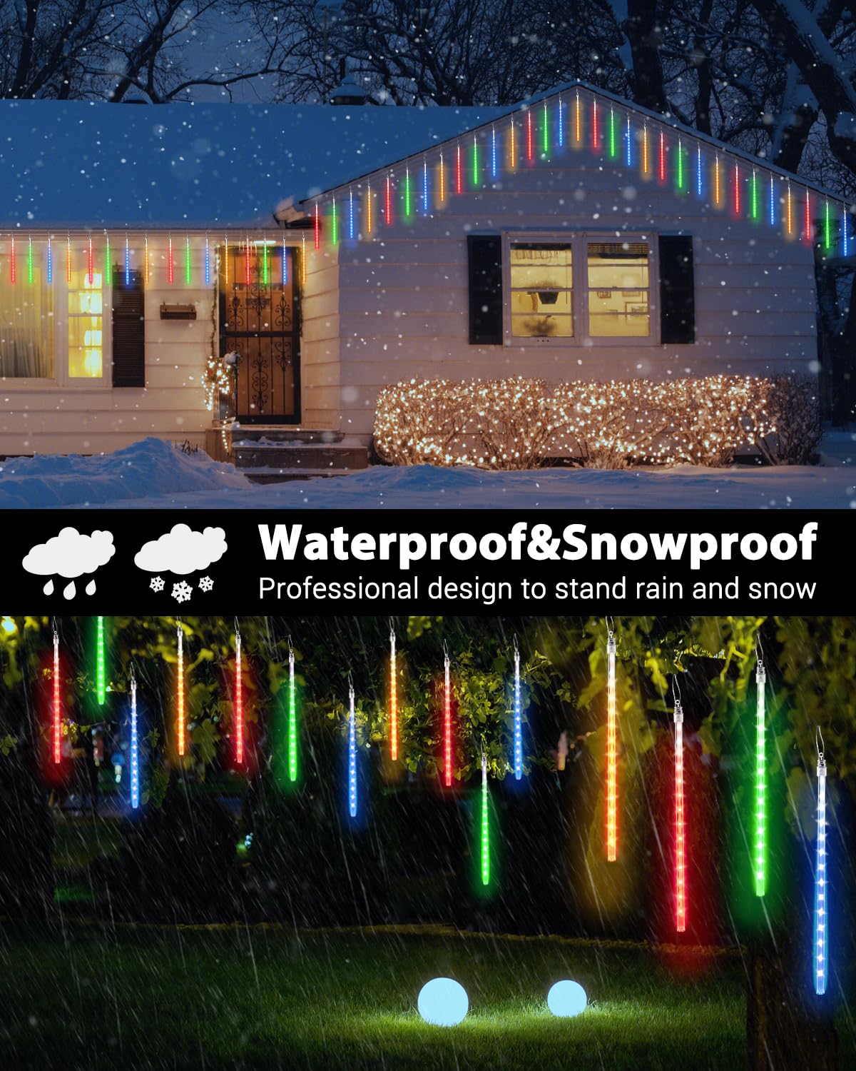 Multicolor 20 Tubes Meteor Shower Icicle Light 480 LED Raindrop Lights with Timer Function Cascading Falling Rain Lights for Holiday Party Christmas Decorations