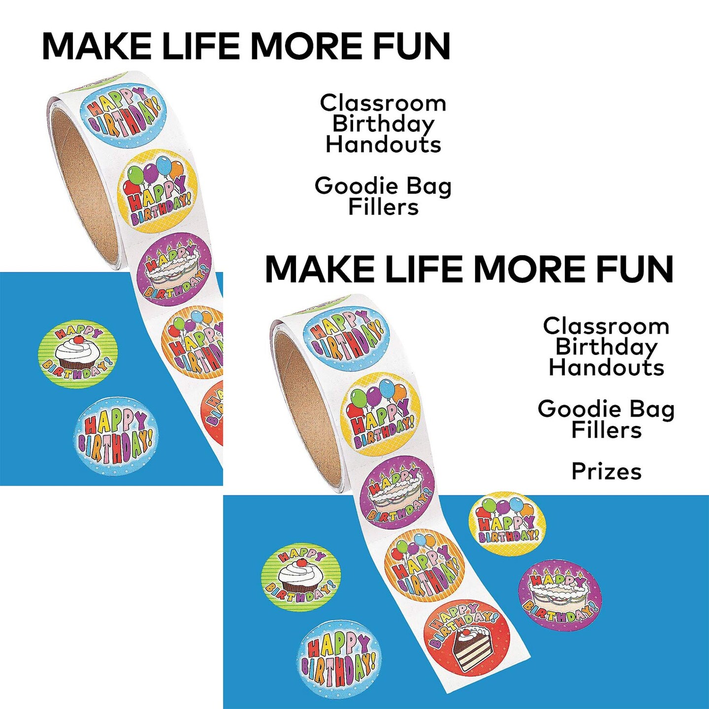 Multicolor Happy Birthday Sticker Roll 100 Pieces