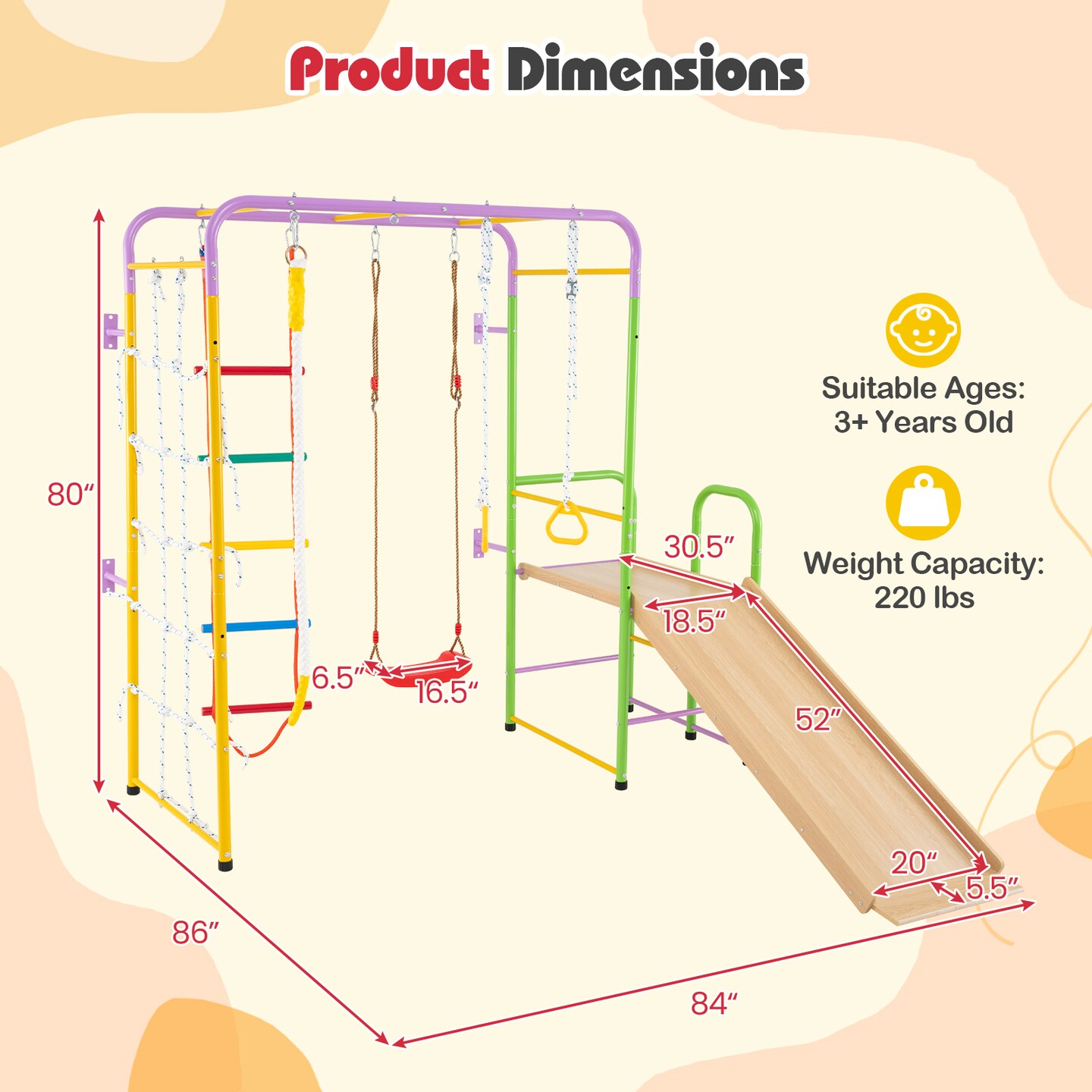 Multicolor Metal and Plywood 8-in-1 Kids Indoor Climbing Playset with Swing and Slide