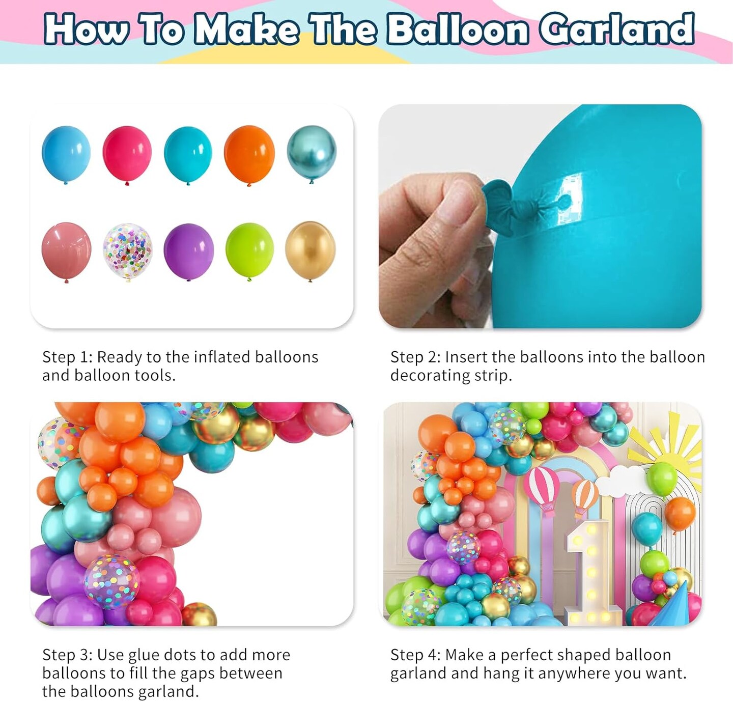 Multicolor Neon Balloon Arch Garland Kit(Baby Shower, Birthday)