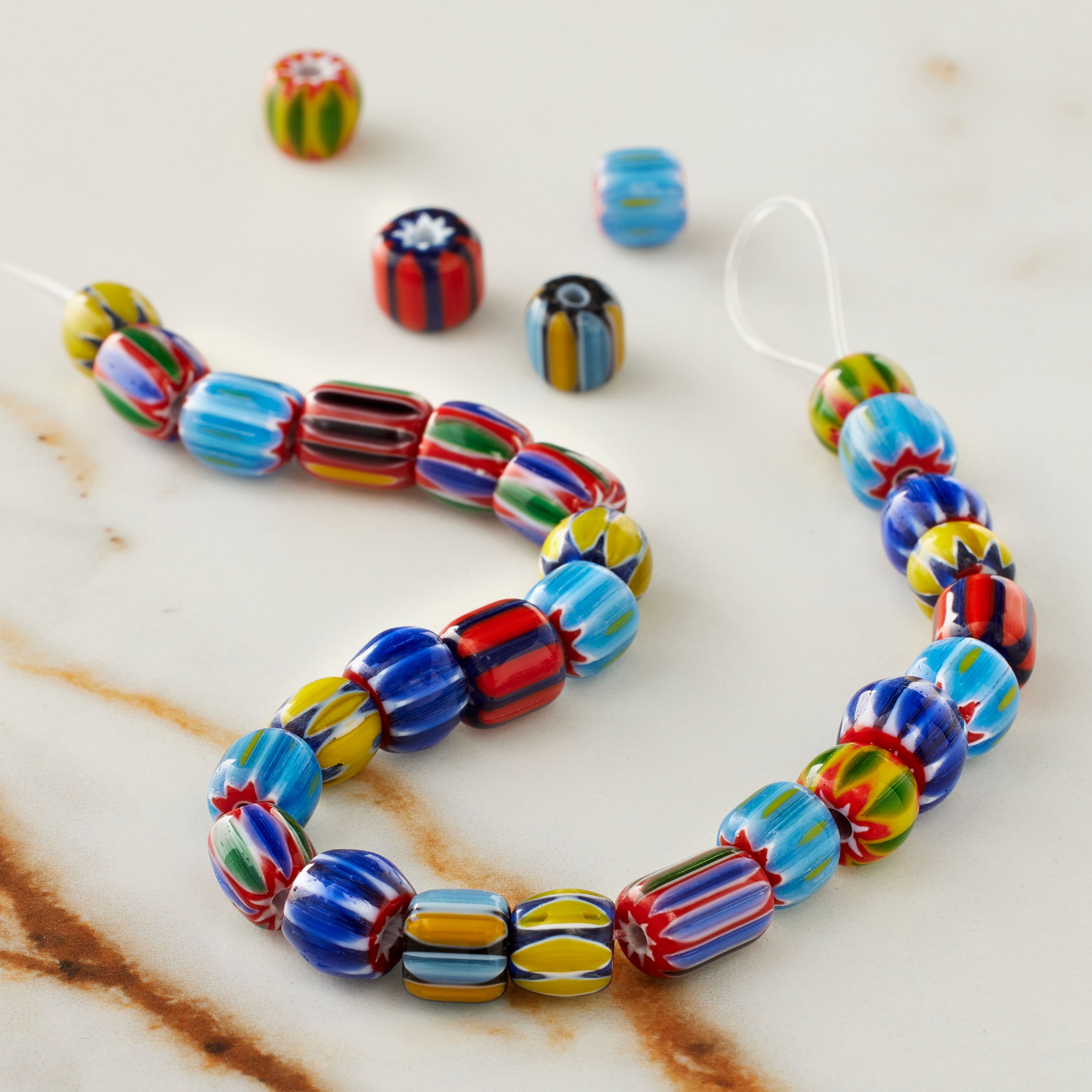Multicolor Striped Lamp Work Glass Tube Beads by Bead Landing®