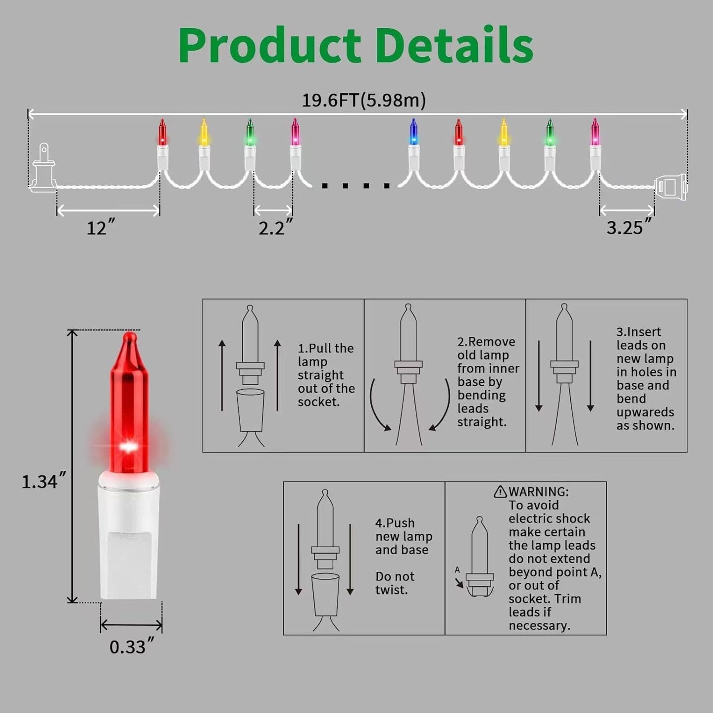 Multicolour Easter Lights 100 Count 19.6 Feet Incandescent Bulb Mini String Lights for Indoor Easter Party Festival Decoration, White Wire