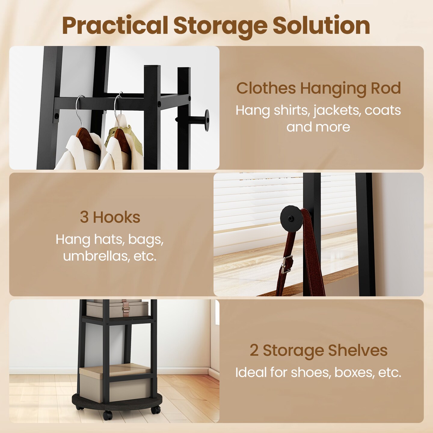 Multifunctional Coat Rack with Full-Length Mirror – Mobile Floor-Standing Clothes Organizer with Hooks