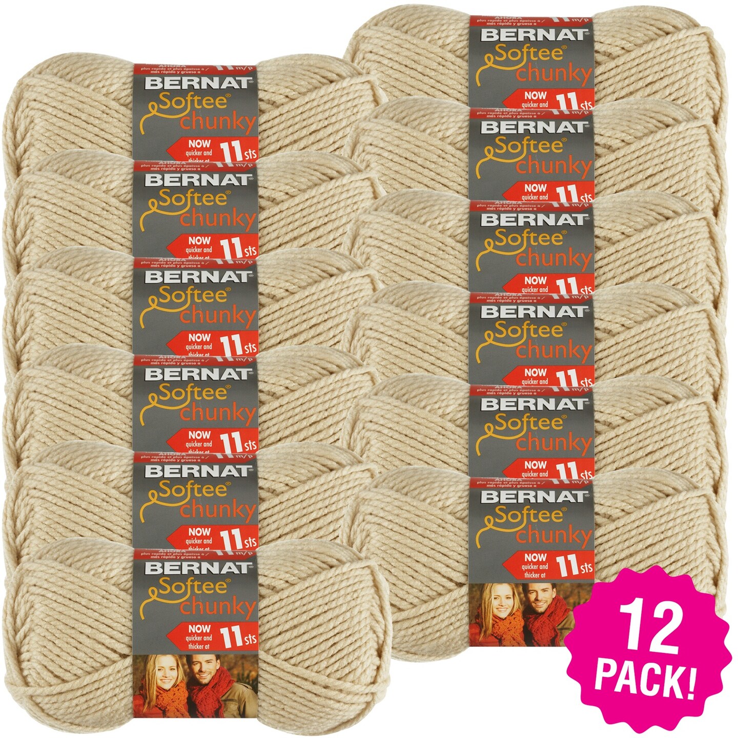 Multipack of 12 - Bernat Softee Chunky Yarn-Linen