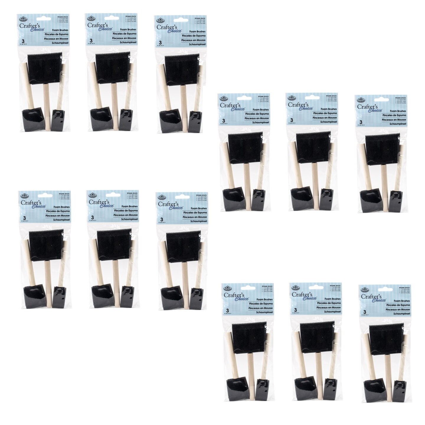 Multipack of 12 - Crafter's Choice Foam Brushes 3/Pkg-1", 2" & 3" Widths