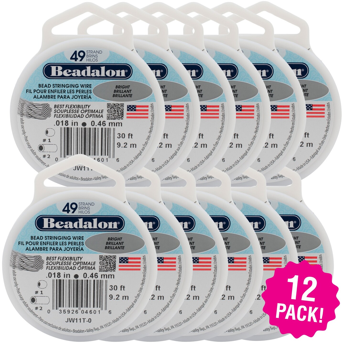 Multipack of 12 - Stringing Wire 49-Strand .018"X30'-Bright