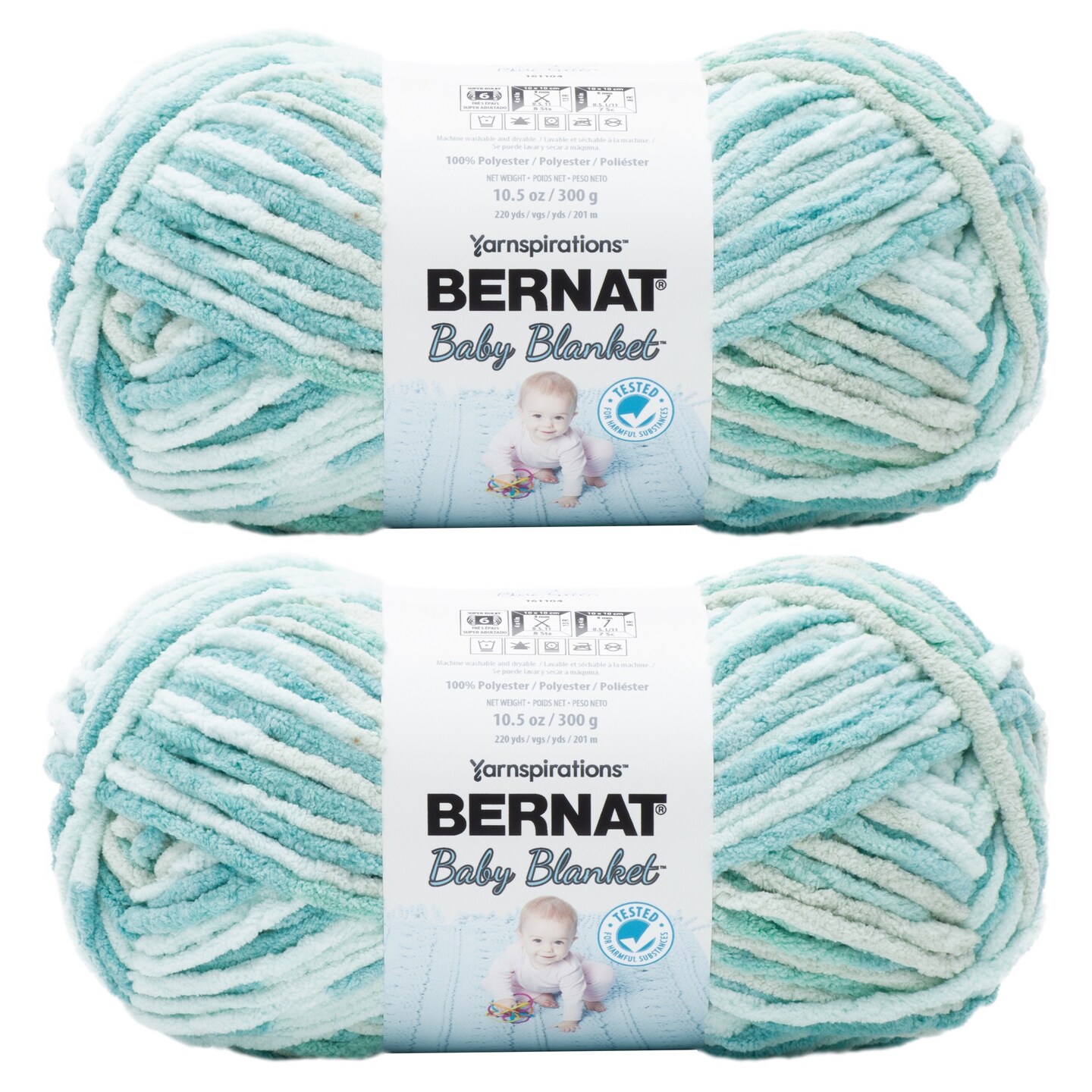Multipack of 2 - Bernat Baby Blanket Big Ball Yarn-Baby Blue/Green