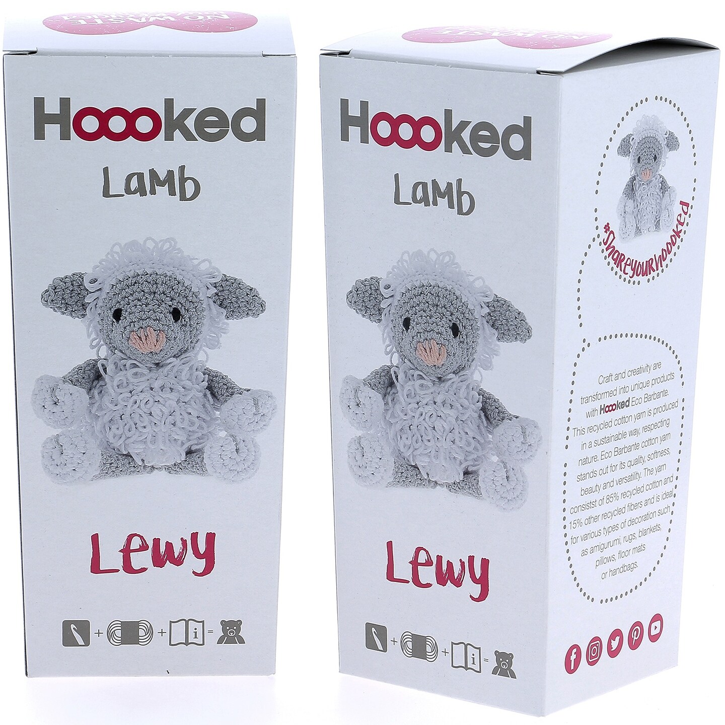 Multipack of 2 - Hoooked Lamb Lewy Yarn Kit W/Eco Barbante Yarn-White & Gray