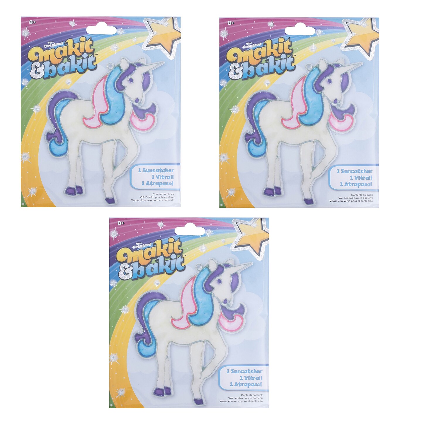 Multipack of 3 - Colorbok Makit & Bakit Suncatcher Kit-Glitter Unicorn