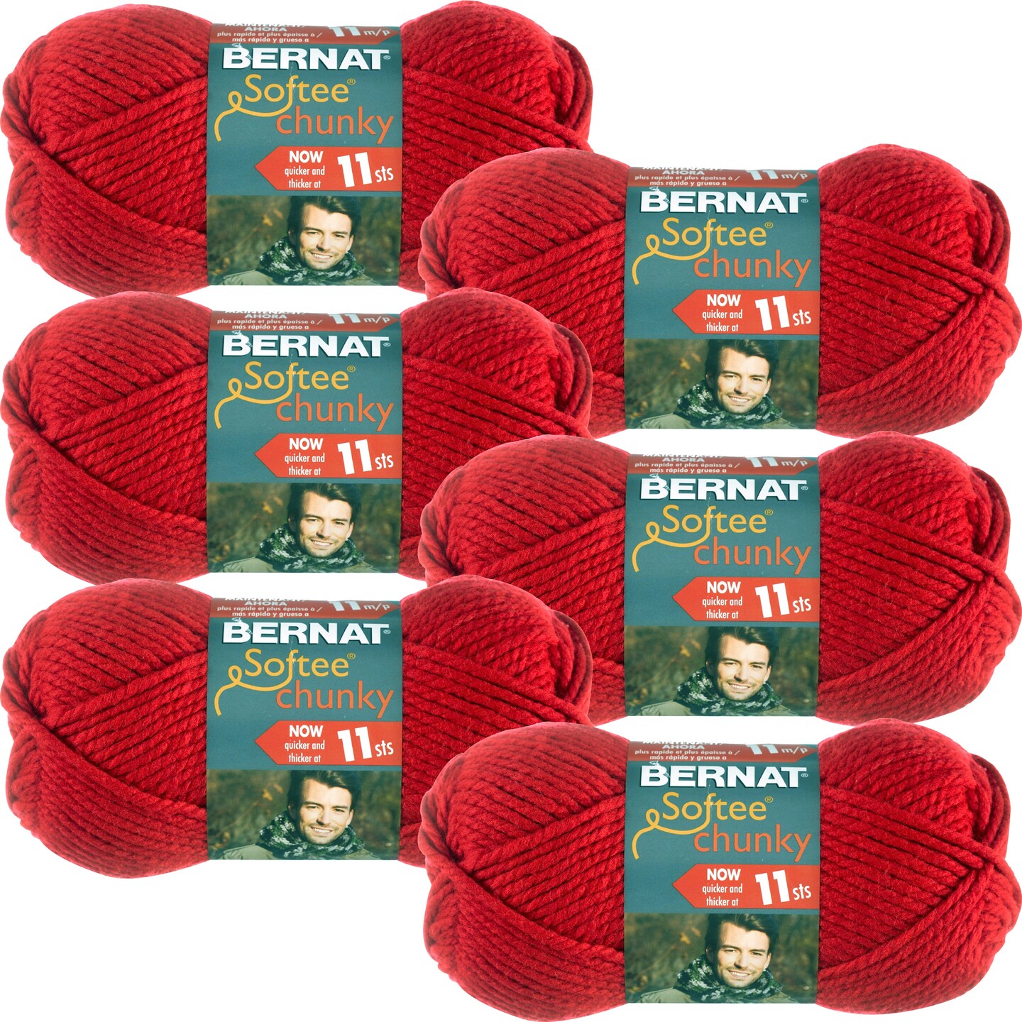 Multipack of 6 - Bernat Softee Chunky Yarn-Berry Red