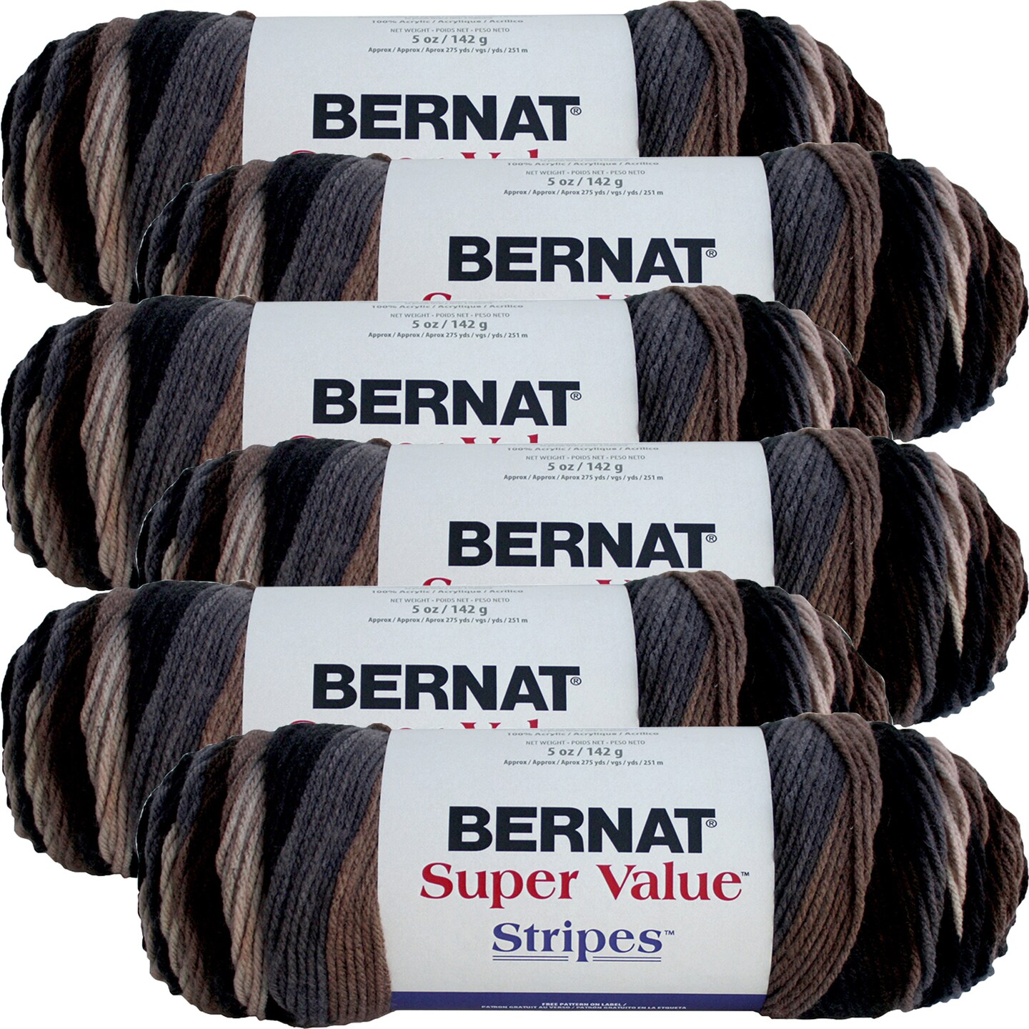 Multipack of 6 - Bernat Super Value Stripes Yarn-Beachwood