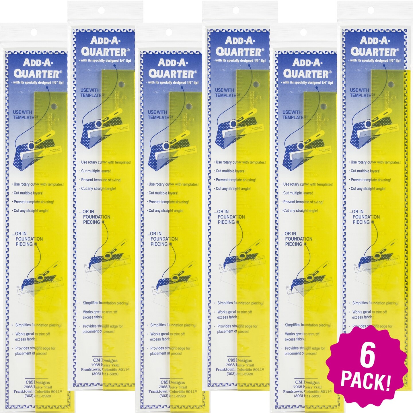 Multipack of 6 - CM Designs Add-A-Quarter Ruler-12"