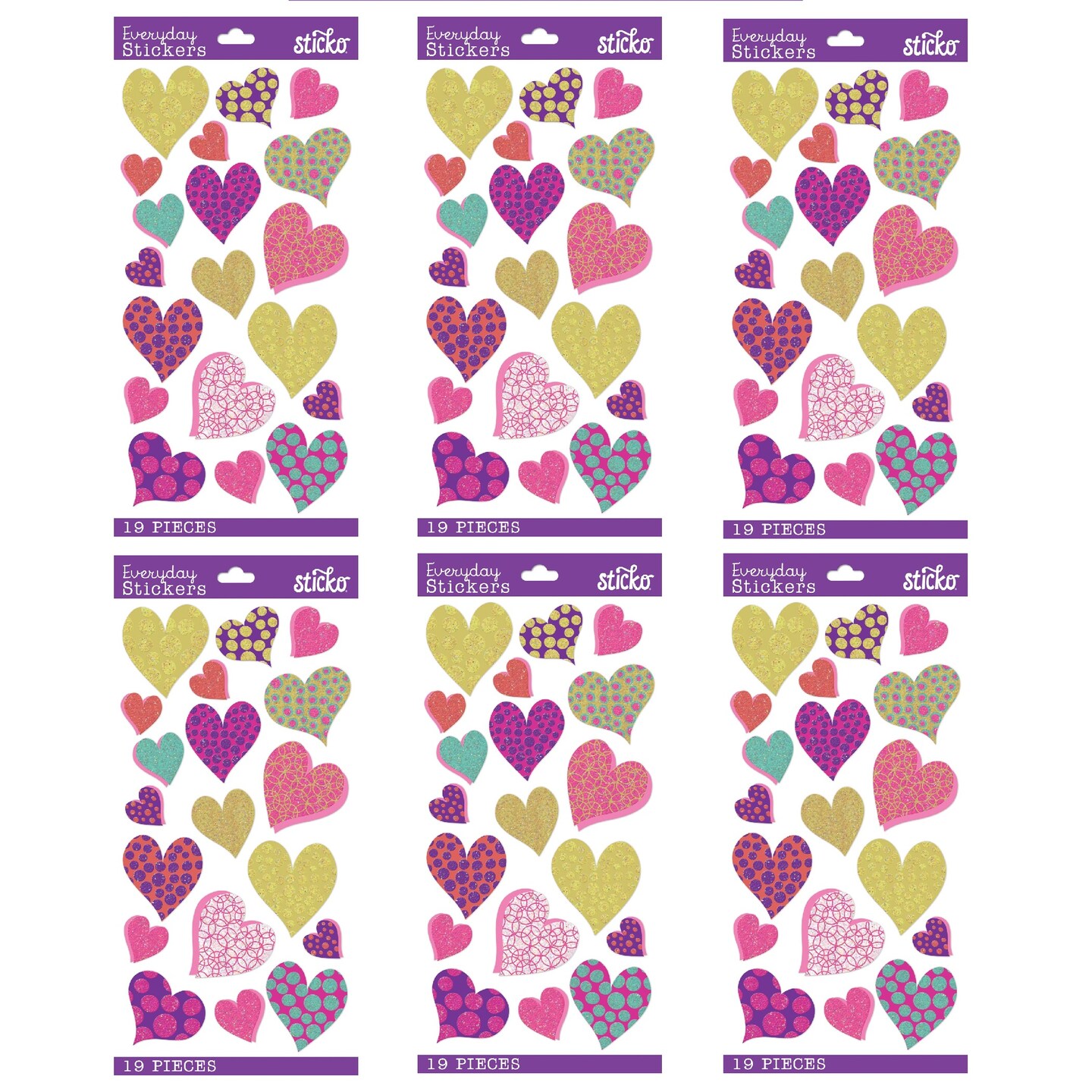 Multipack of 6 - Sticko Themed Stickers - Heart Circles, 19pcs