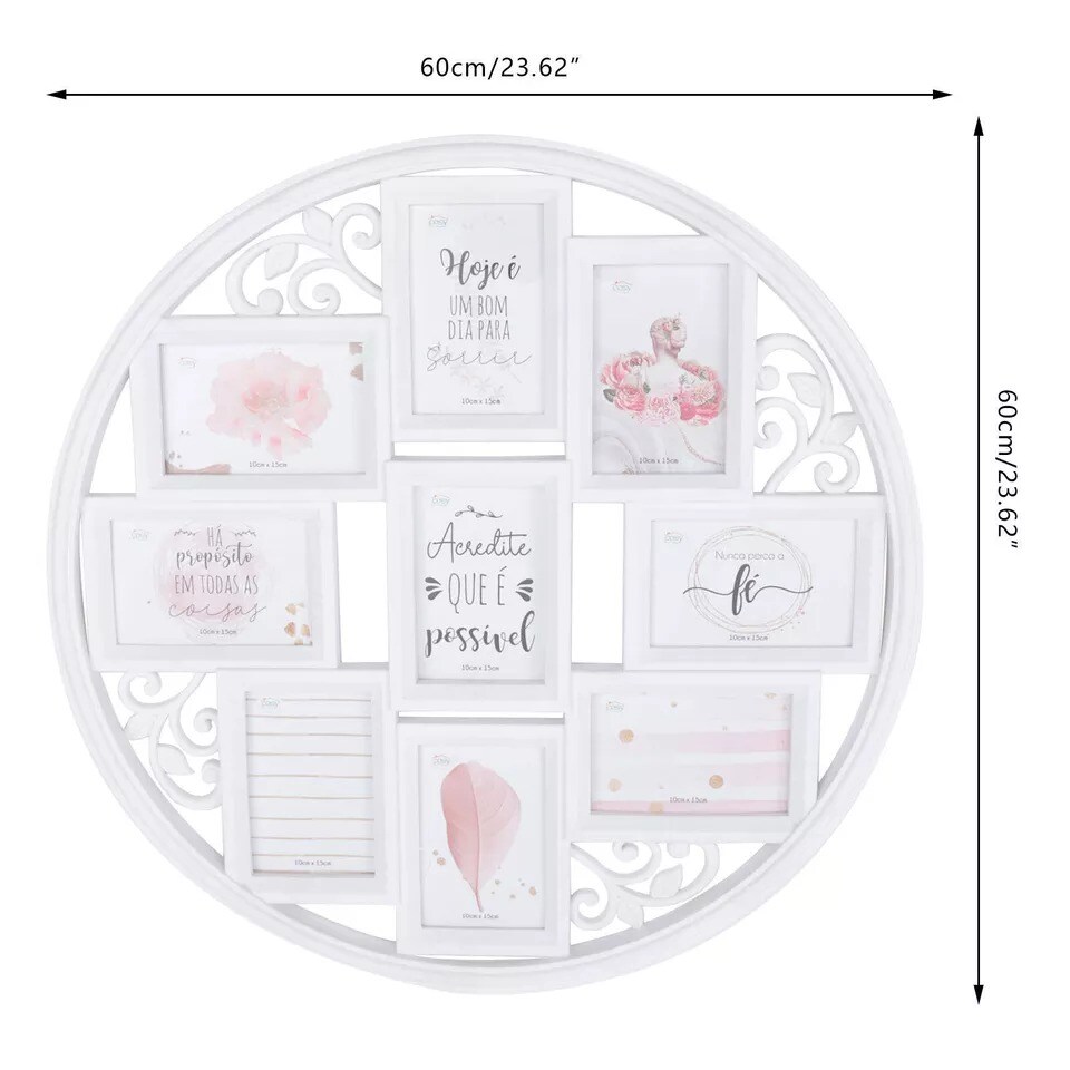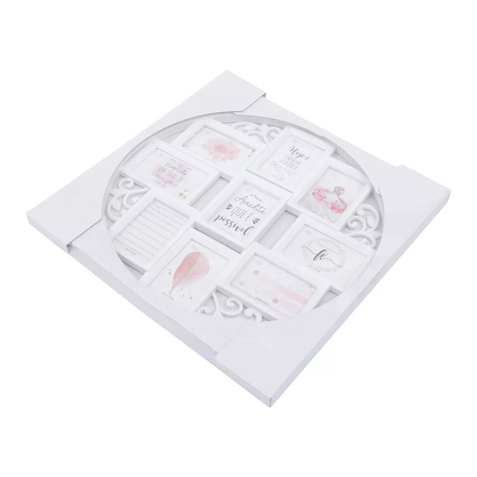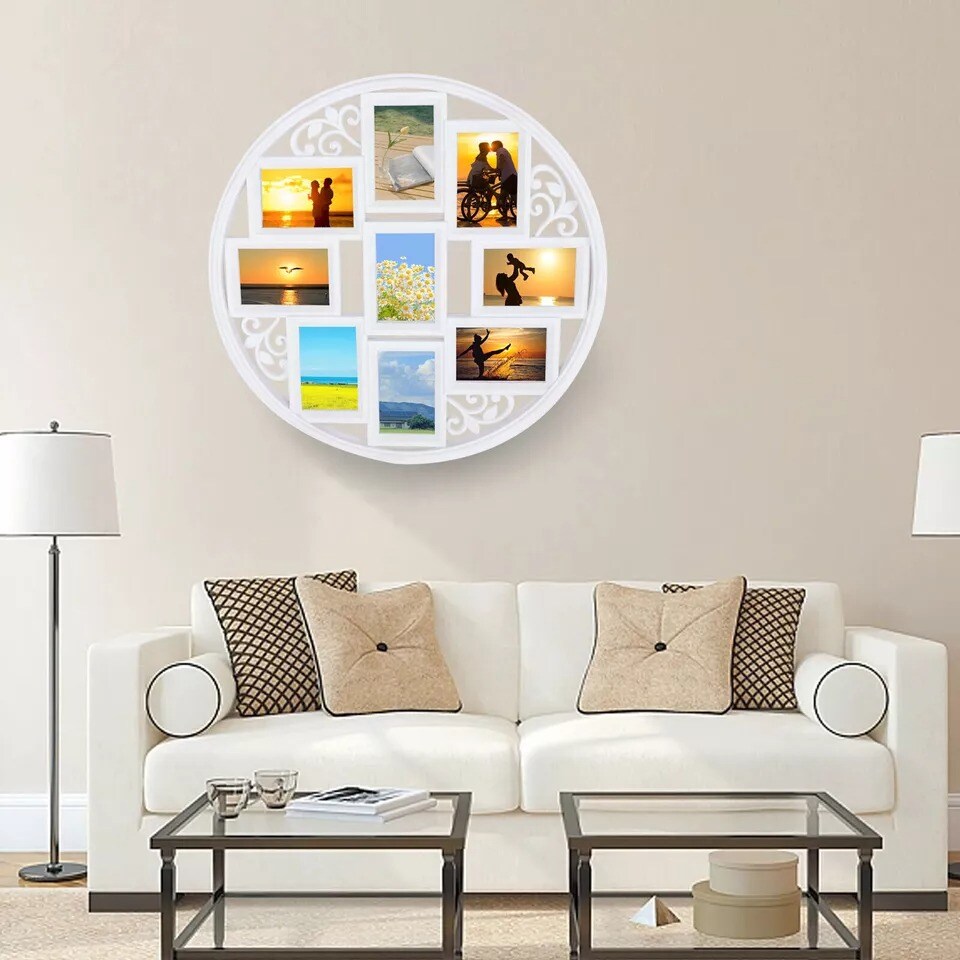Multi-photo Collage Picture Round White Frame Holds 9 Photos 4 X 6 In Display