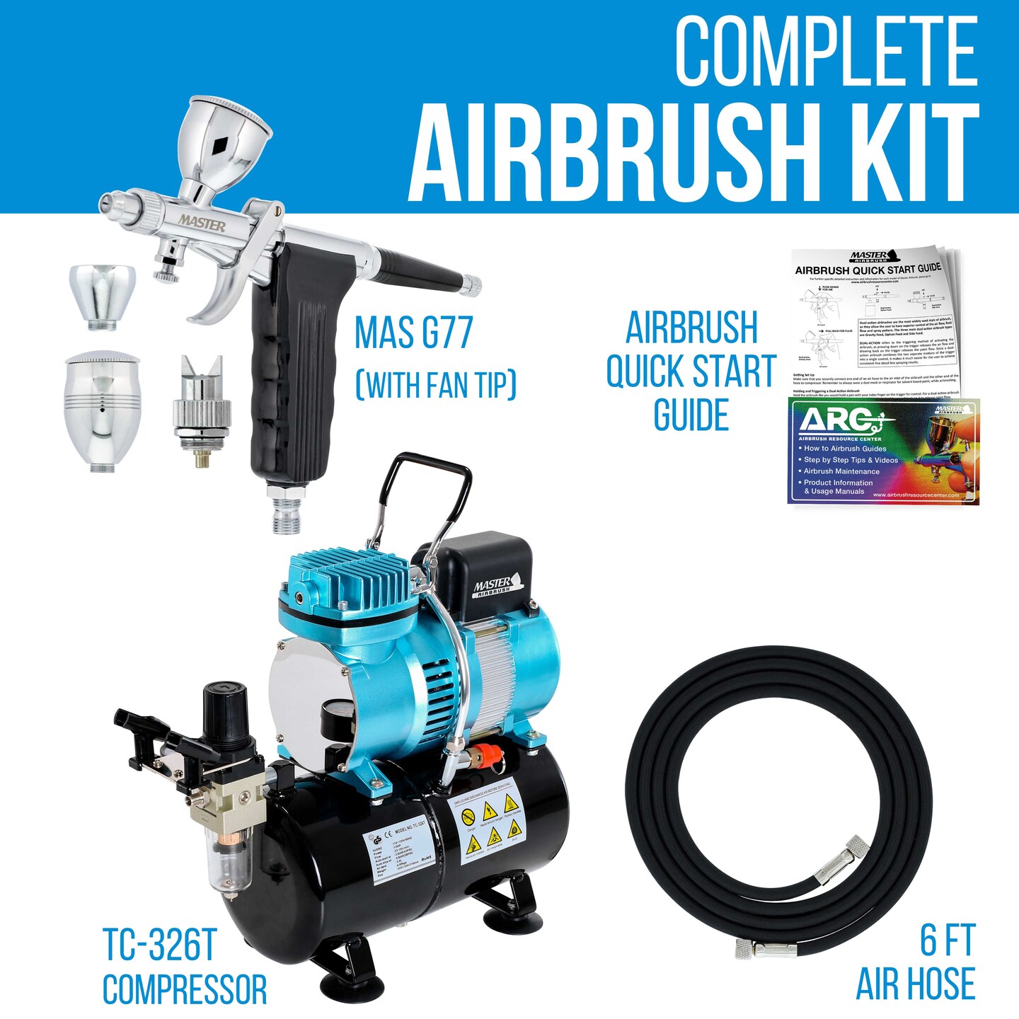 Multi-Purpose Precision Pistol Trigger Fixed Dual-Action Gravity Feed Airbrush Kit with High Performance Airbrush Air Compressor with Air Storage Tank