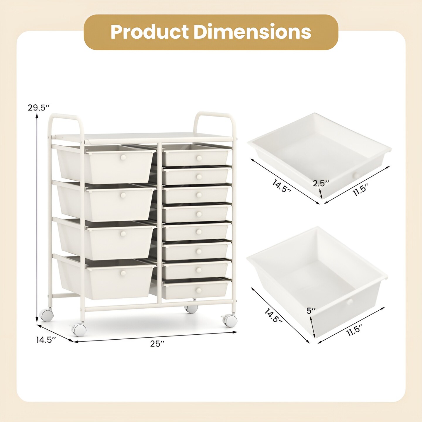 Multi-Use Rolling Storage Cart with 12 Drawers, 34.5 in Height