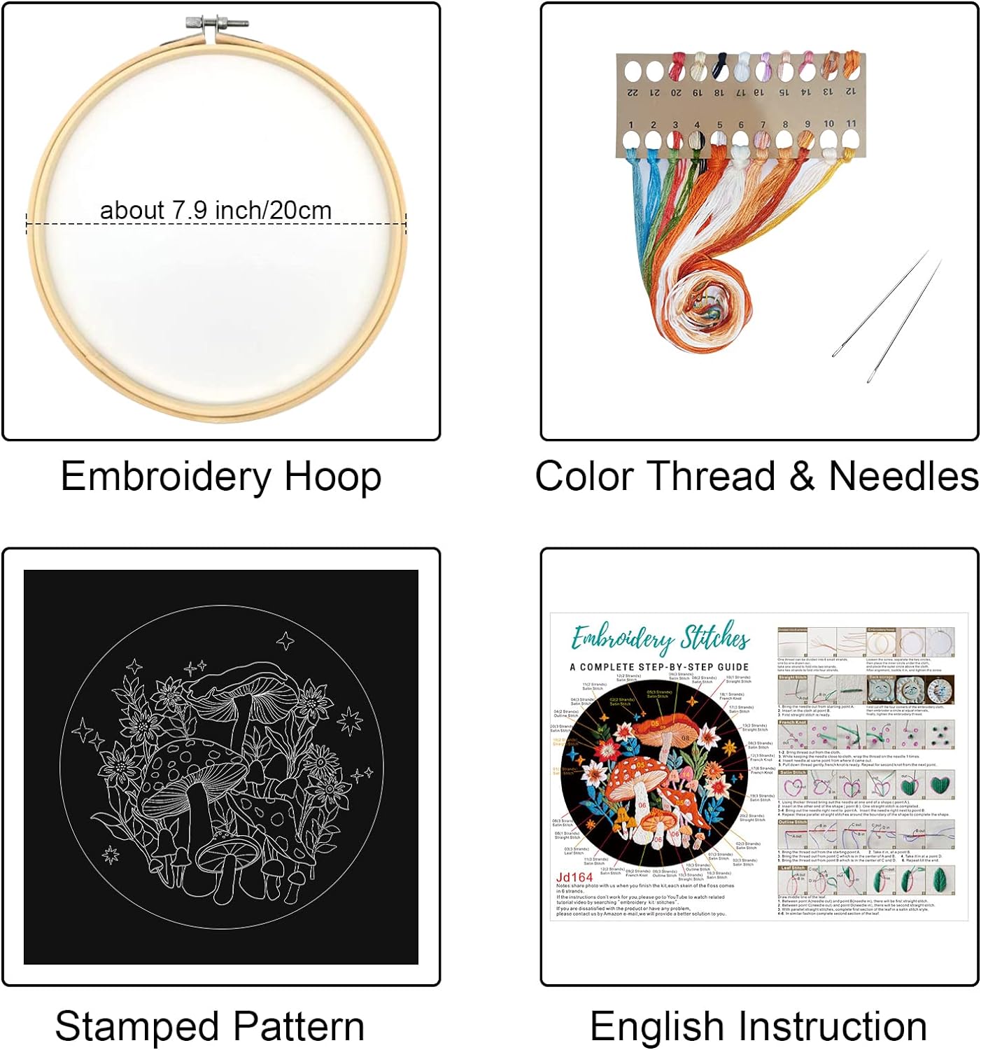 Mushroom Embroidery Kit for Beginners – Starry Night Pattern DIY Needlepoint Cross Stitch for Adults