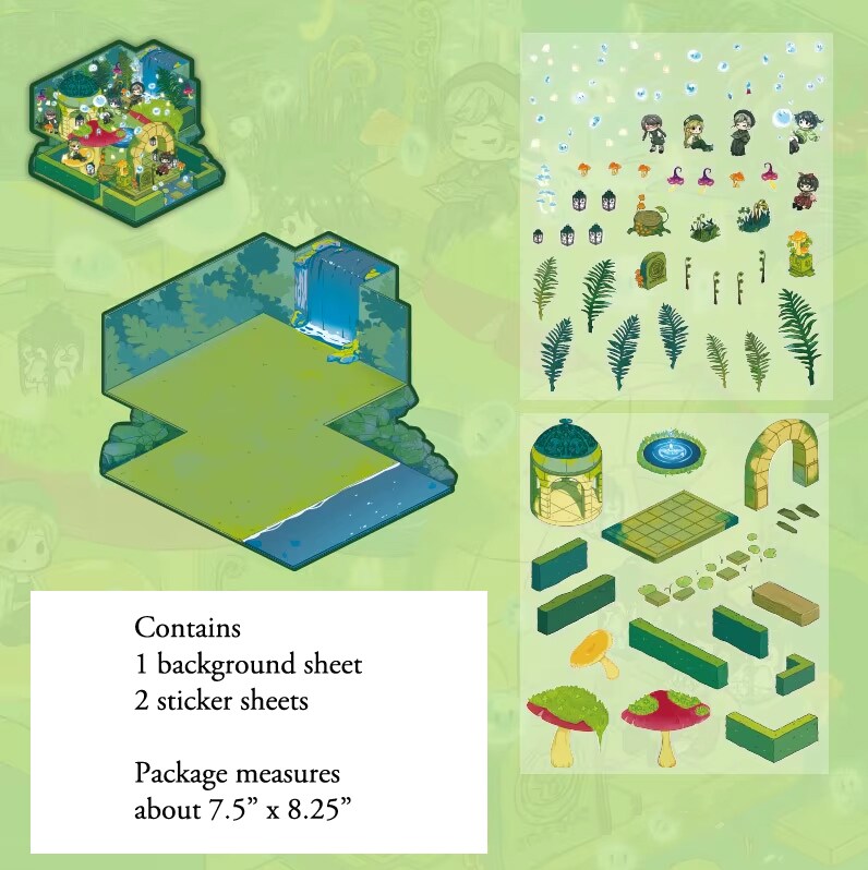 Mushroom Garden Landscape Sticker Set, DIY Isometric Pack, Adorabilities
