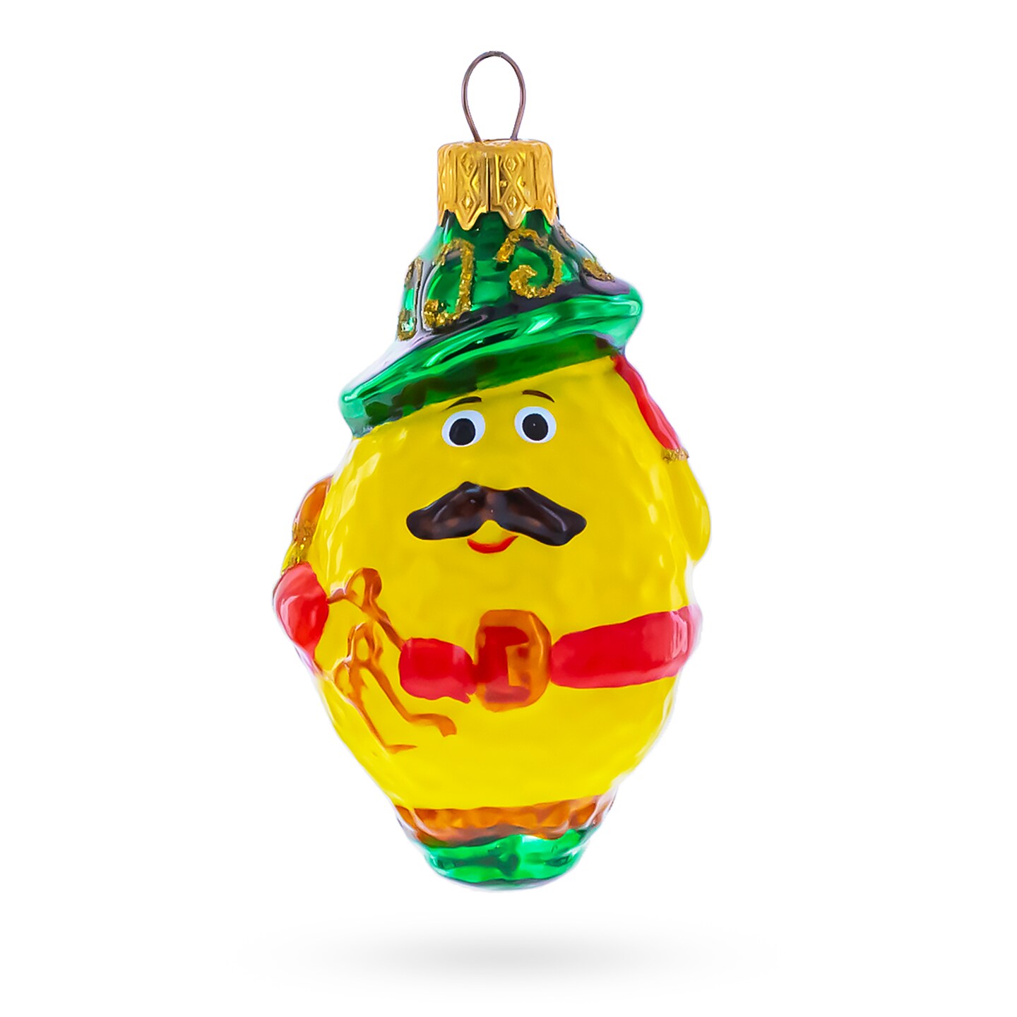 Mustached Lemon in Alpine Outfit Glass Christmas Ornament