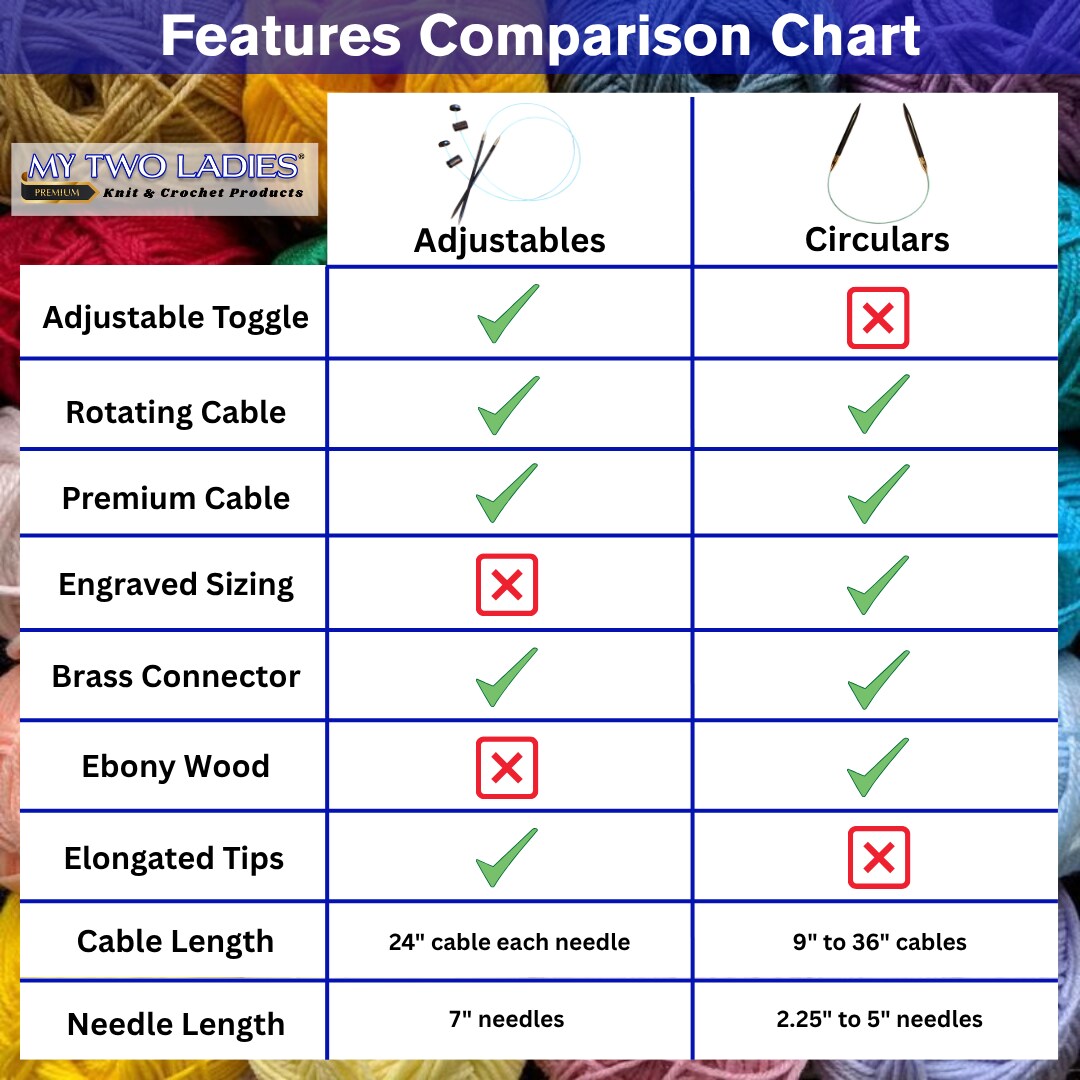 My Two Ladies | Blue Silk | Fine-Medium Set | Adjustable Knitting Needles | 4 SIZES | US5, US6, US7, US8 | w/custom case