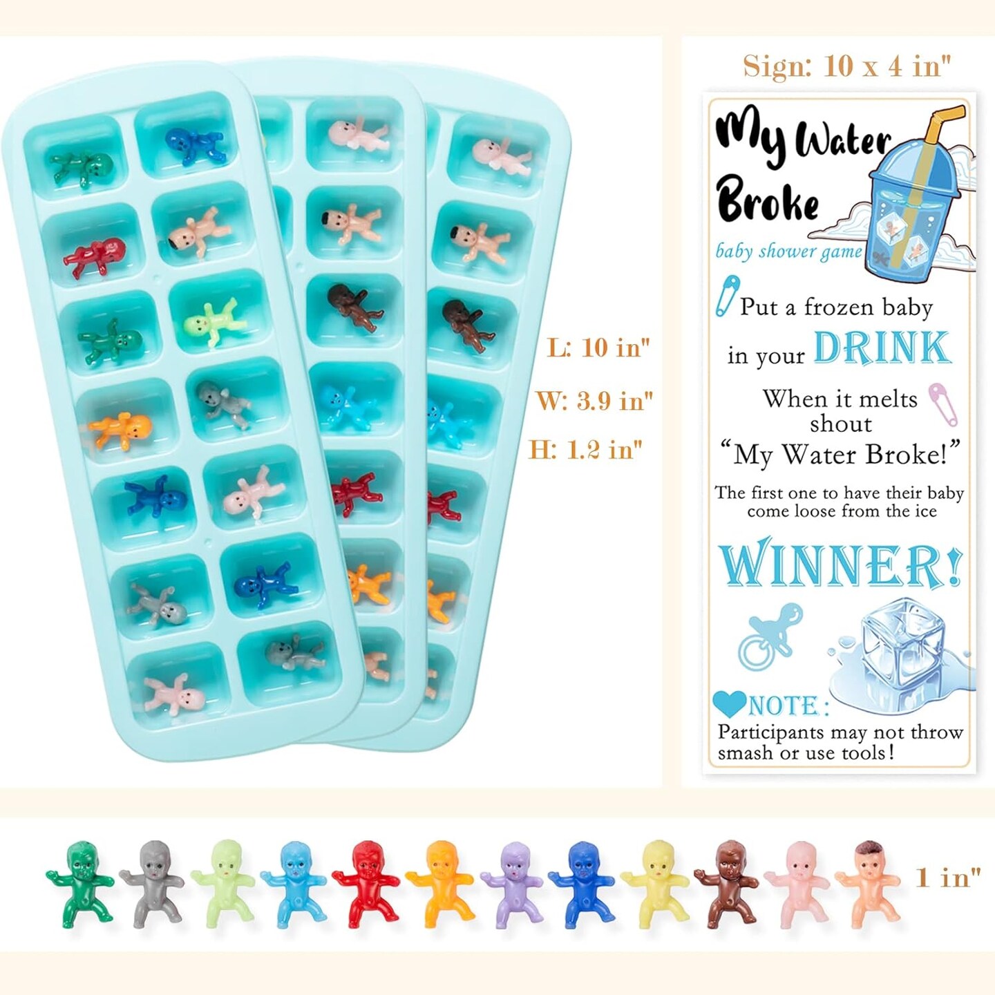 My Water Broke Baby Shower Game – 60 Mini Babies, 3 Ice Trays & Sign (Multicolor-1)