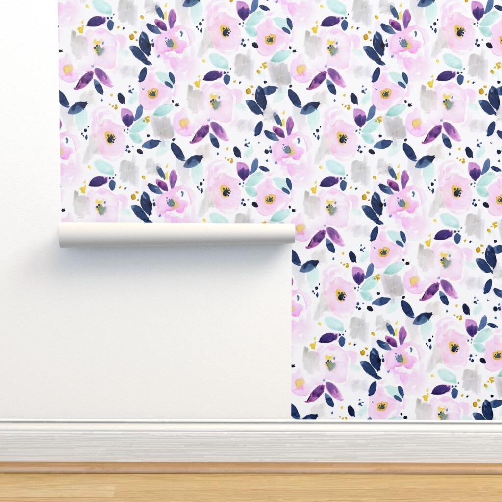 Mystical Floral Flowers Purple Abstract Lavender Watercolor Custom Removable Wallpaper by Spoonflower Peel & Stick Wallpaper 2FT Wide
