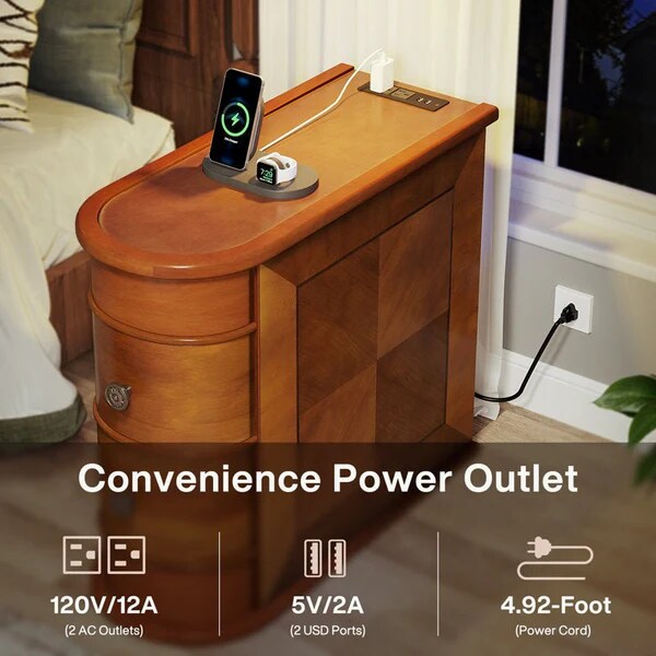 Narrow End Table with 2 Sliding Drawers Storage Side Table No Assembly