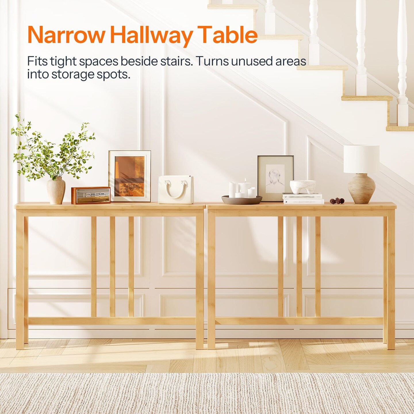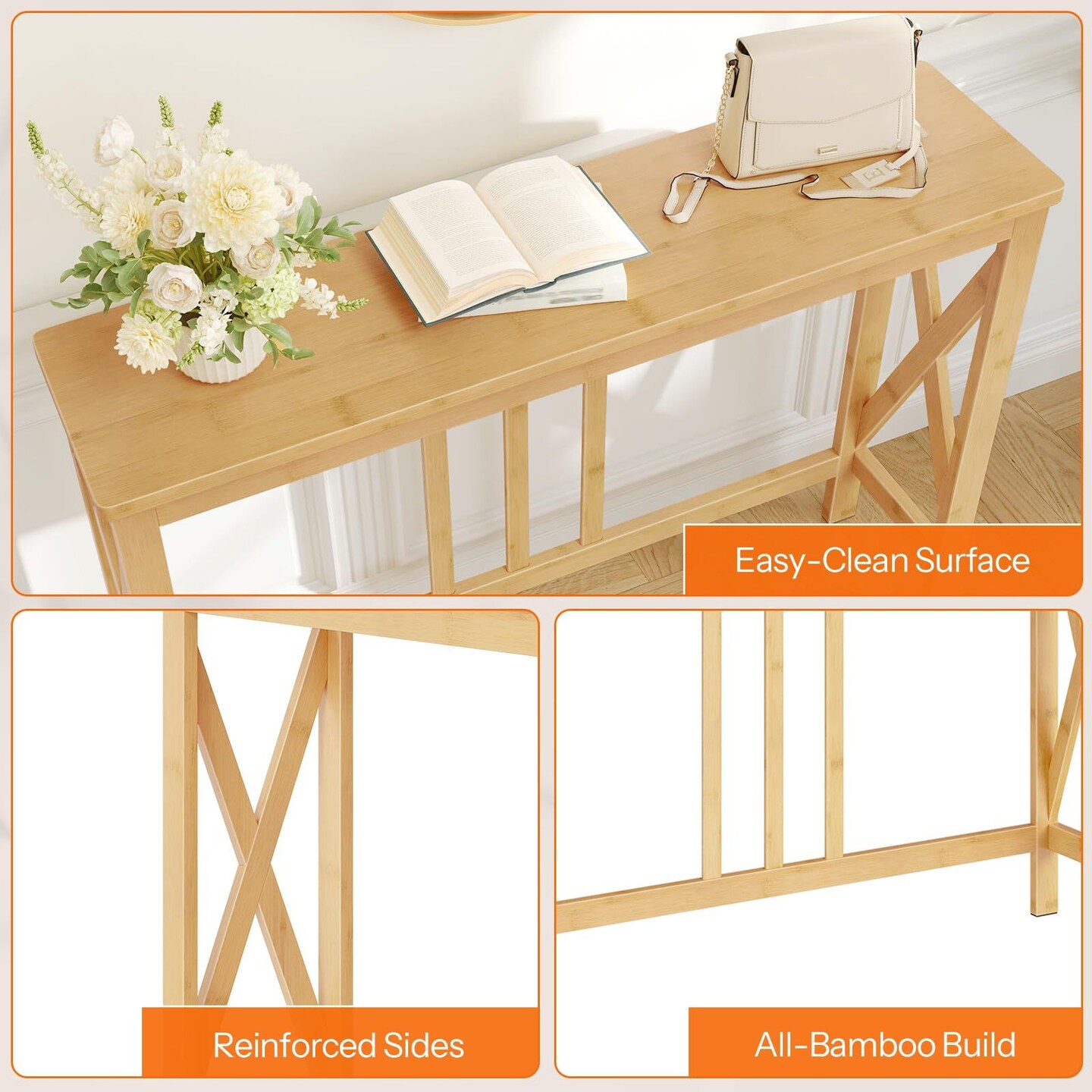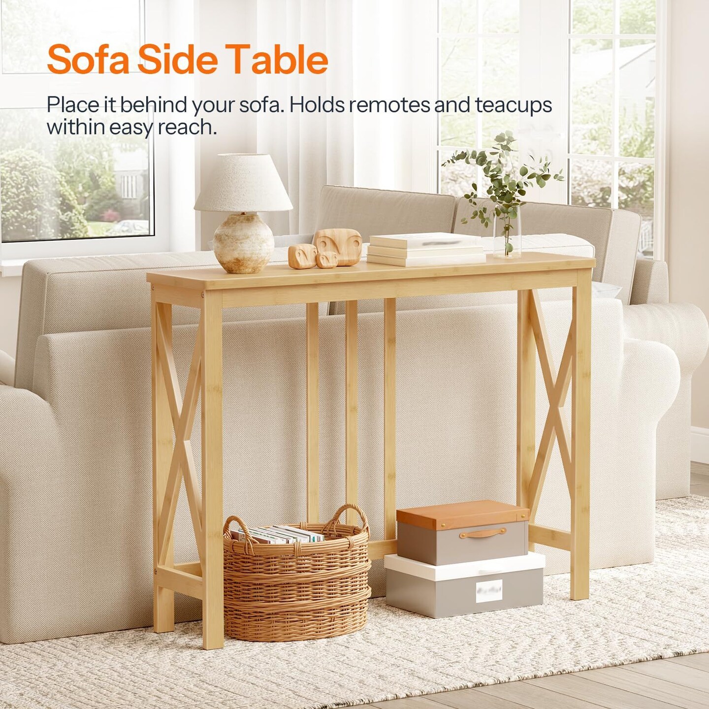 Narrow Wicker Console Table with Sturdy X-Brace, Modern Accent Table