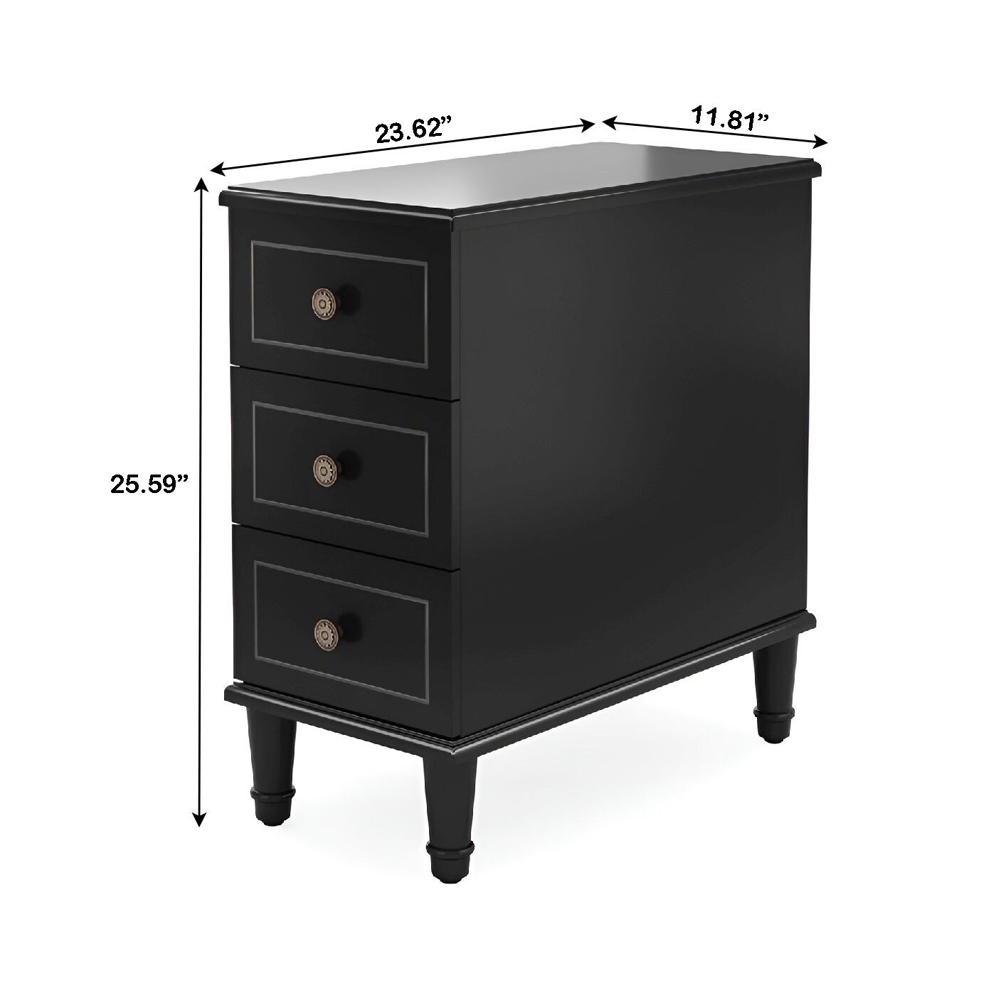 Narrow Wood Nightstand Side Table with 3 Drawers Fully Assembled