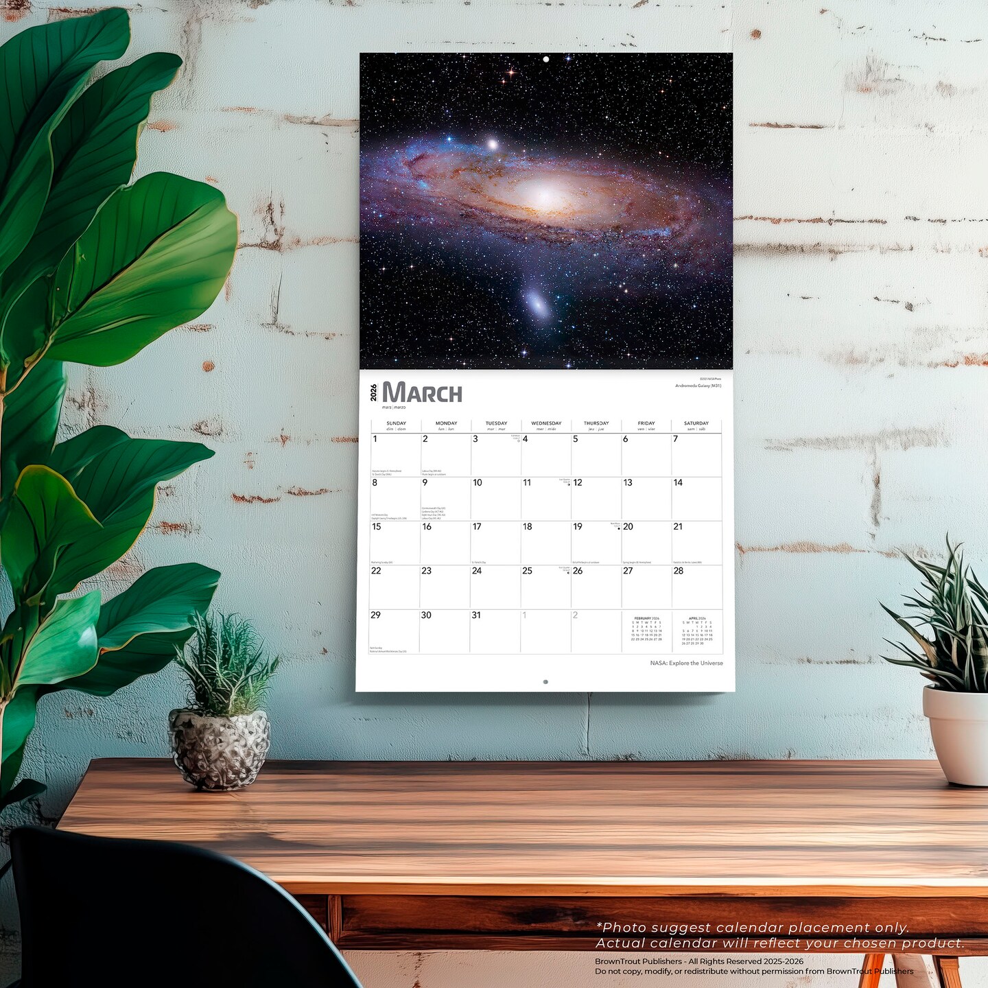 NASA Explore the Universe | 2026 14 x 24 Inch (Hanging) Monthly Deluxe Wall Calendar | Foil Stamped Cover | Plastic-Free
