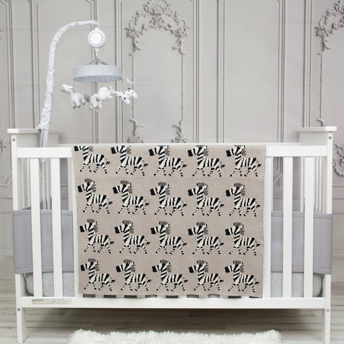 Nassau Collection Knitted Zebras Rectangular Cotton Baby Throw Blanket - 32" x 40" - Gray and White