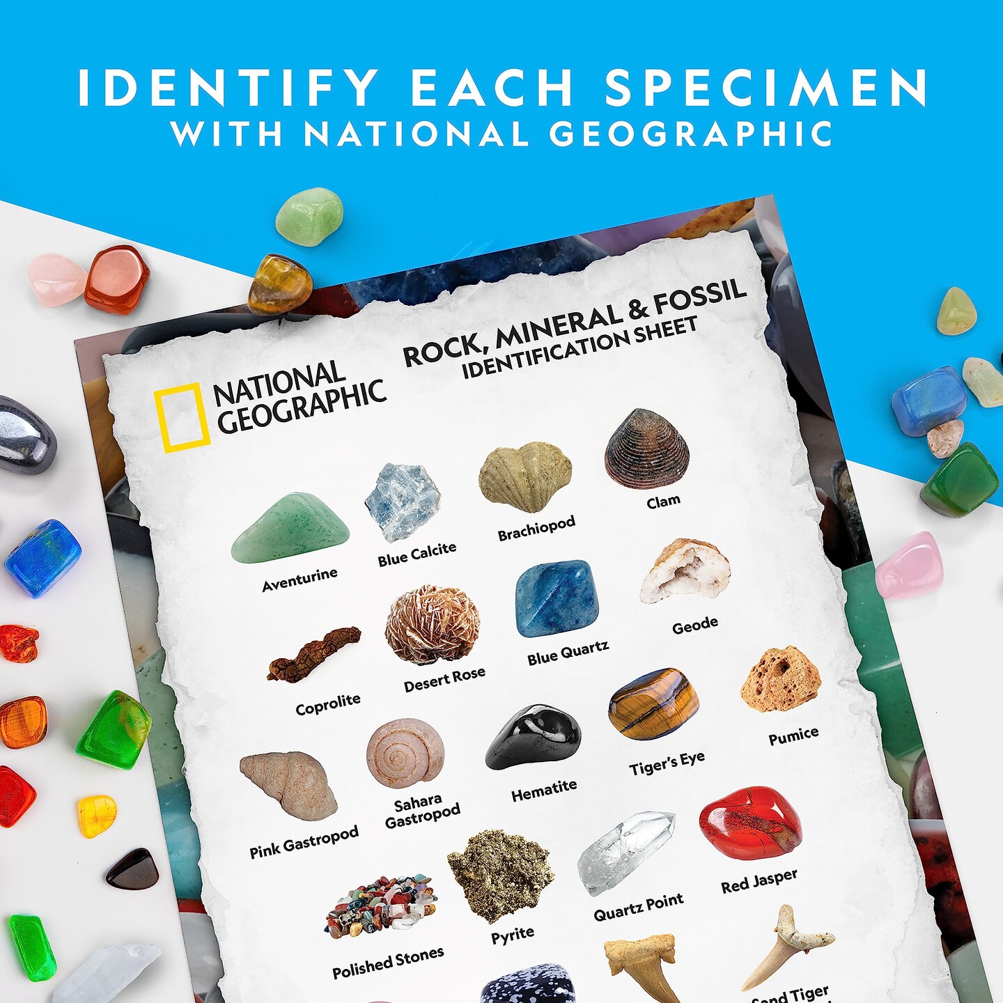 NATIONAL GEOGRAPHIC Rock Collection Box for Kids – 300+ Piece Gemstones and Crystals Set Includes Geodes and Real Fossils, Rocks and Minerals Science Kit , A Geology Gift for Boys and Girls