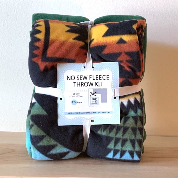 Native American Design Black Anti-Pill No Sew Throw Fleece Fabric Kit