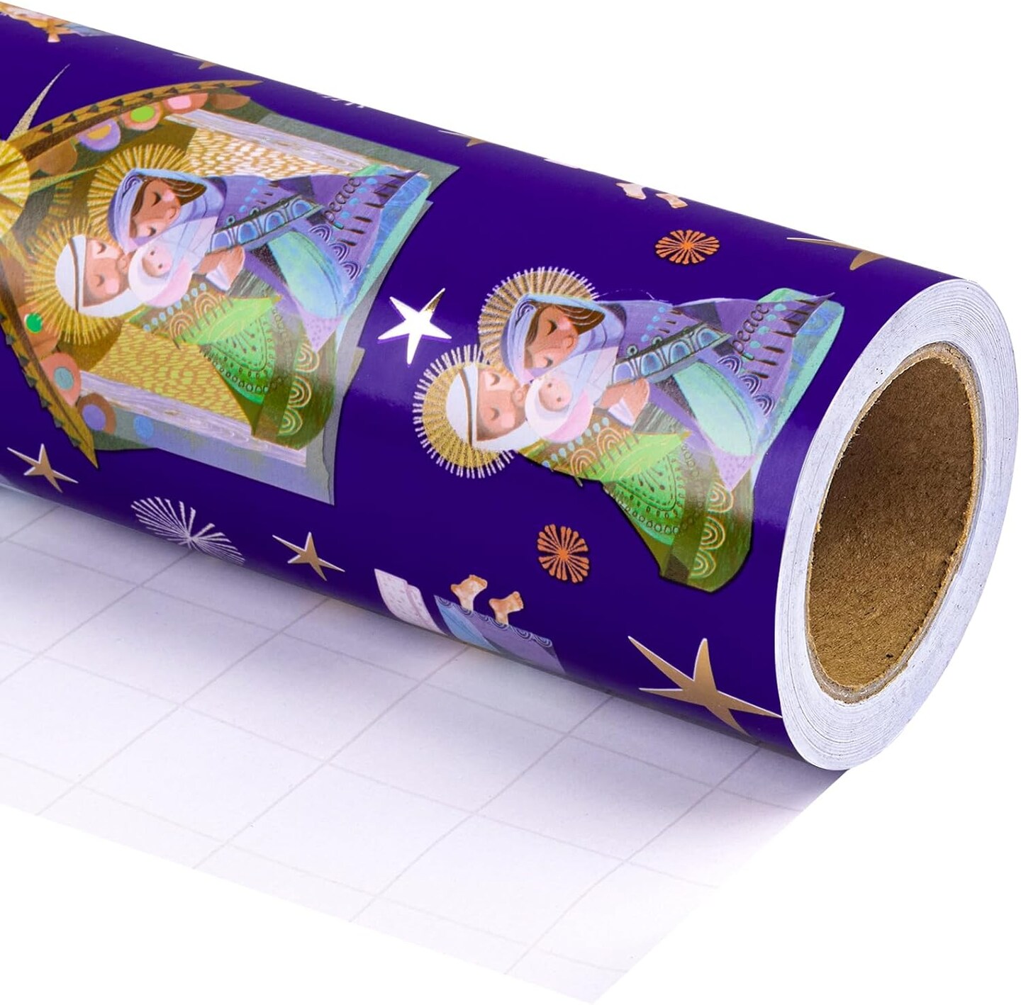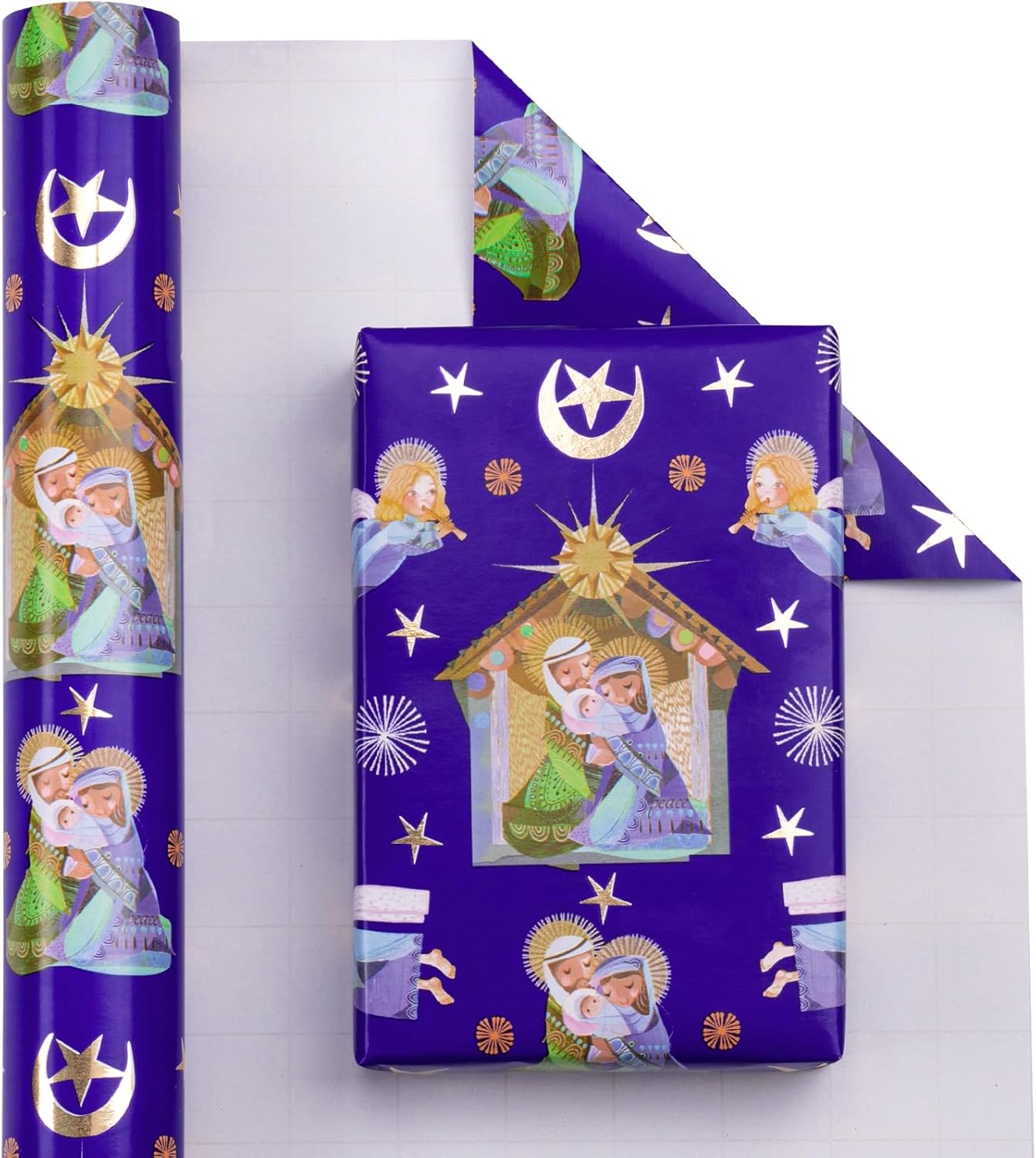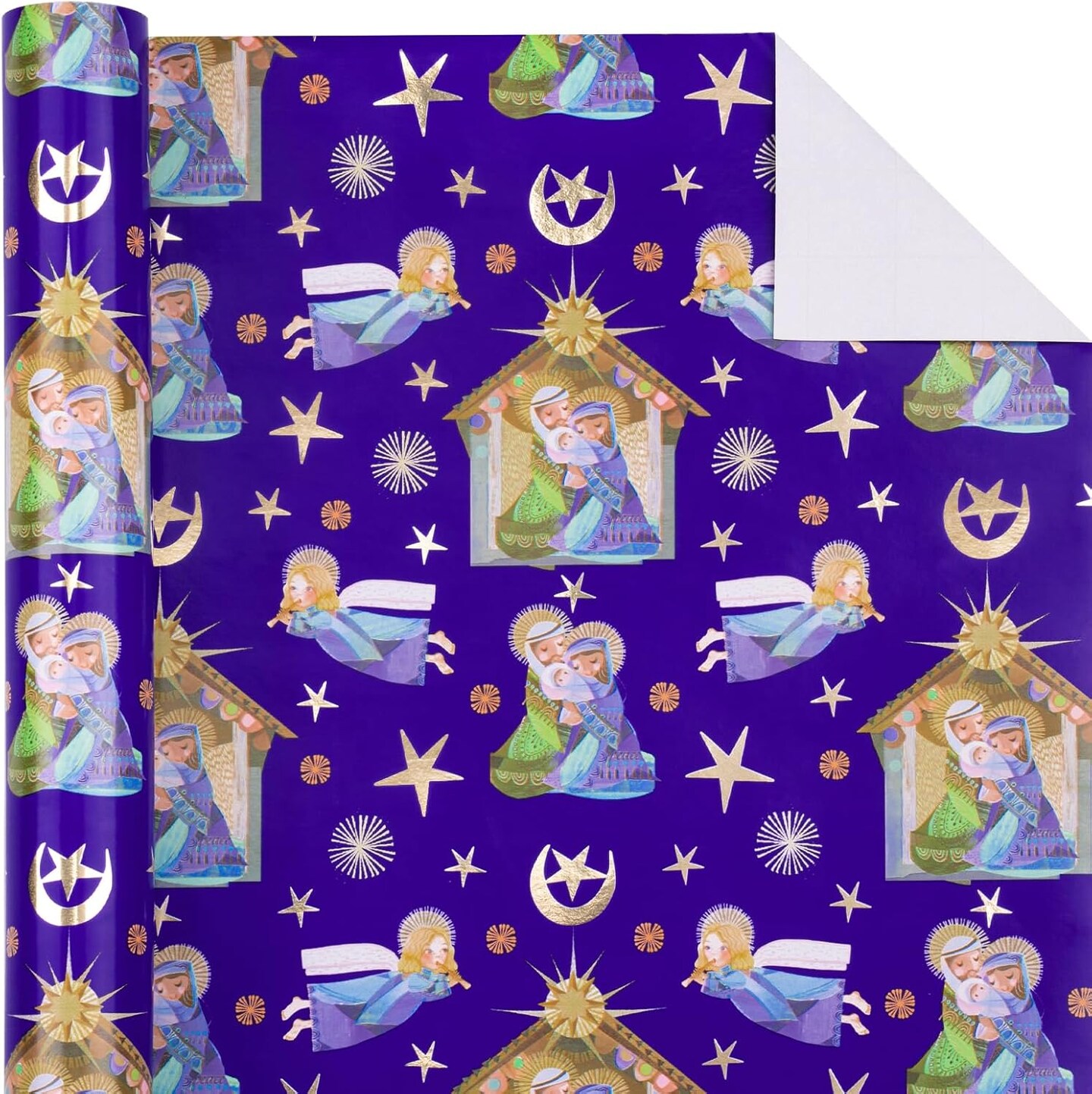 Nativity Christmas Wrapping Paper - Mini Roll - 17 Inch x 33 Feet - Blue Little Angel Design for Christmas, Holiday, Party Celebration