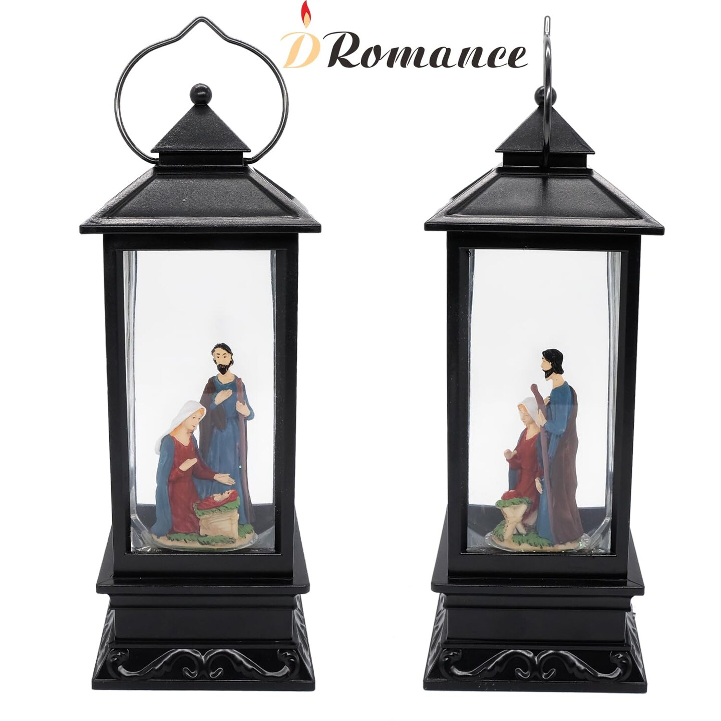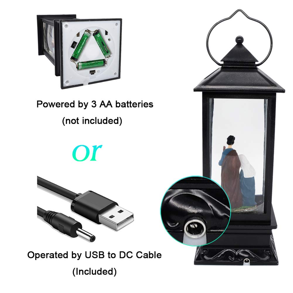 Nativity Music Snow Globe Lantern with Timer Battery Operated & USB Powered Lighted Singing Snow Globe Lamp Spinning Water Swirling Glitters Christmas Decor 4" x 4" x 12"