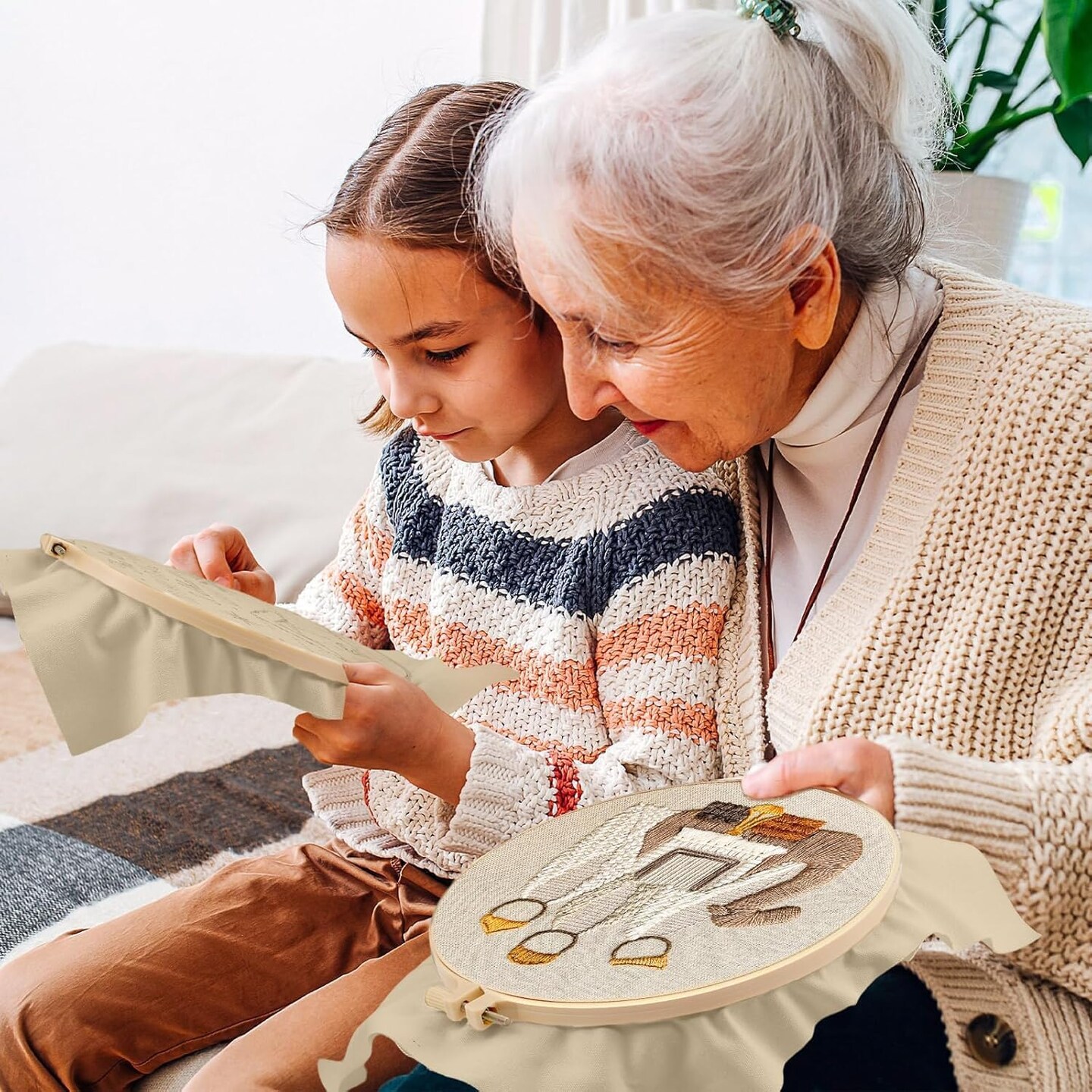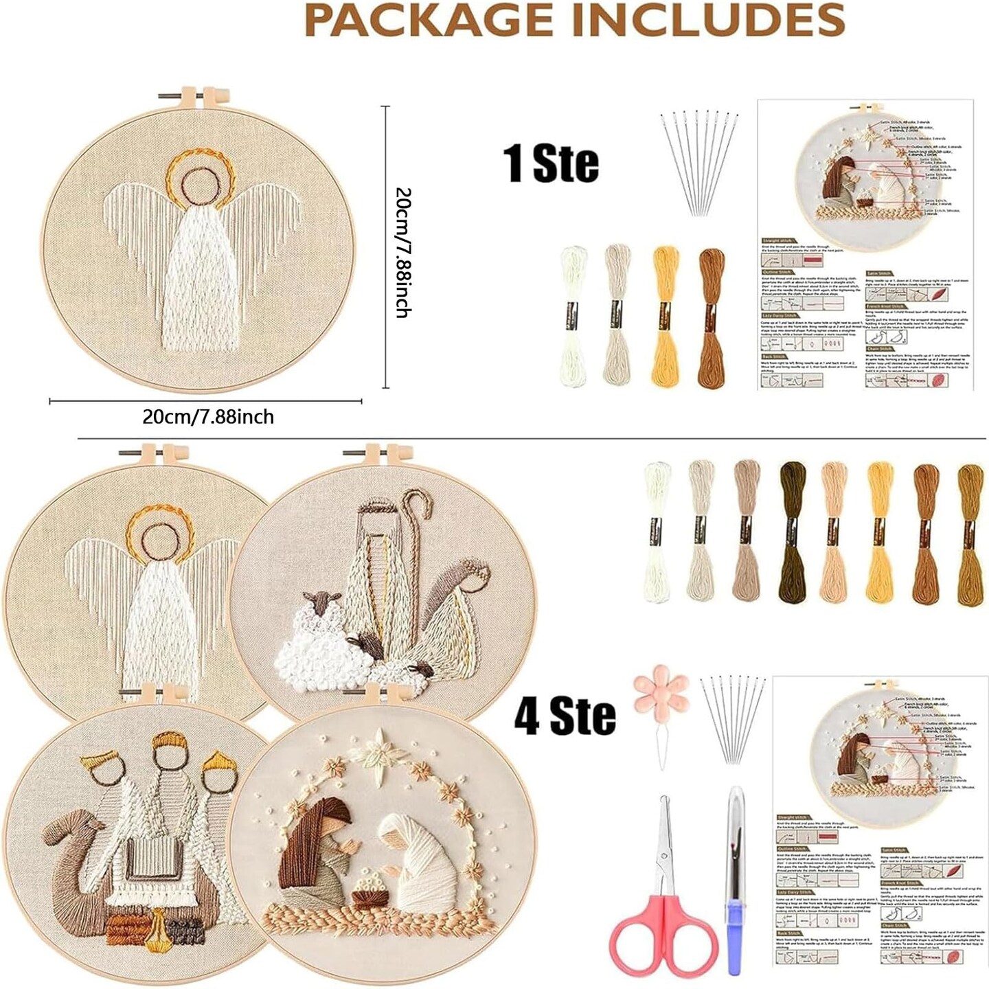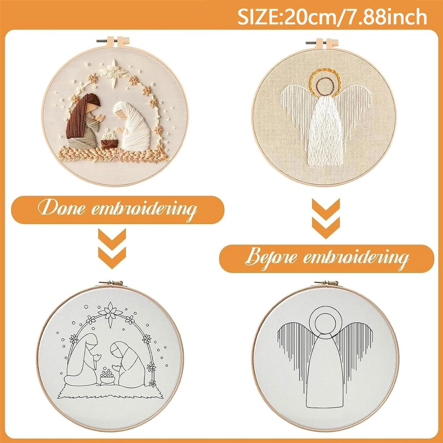 Nativity Scene Embroidery kit,Christmas Cross Stitch Kits,DIY Embroidery Kit for Adults with Pattern,Cotton Threads,Needles,Instruction,20cm Hoop,for Decor Home Room (Manger)