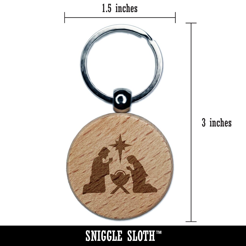 Nativity Scene Silhouette Christmas Baby Jesus Christianity Religious Engraved Wood Round Keychain Tag Charm