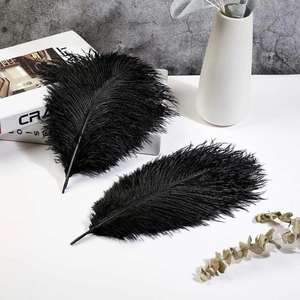 Natural Black Ostrich Feathers 12–14" (50 Pack) for Wedding & Party Décor