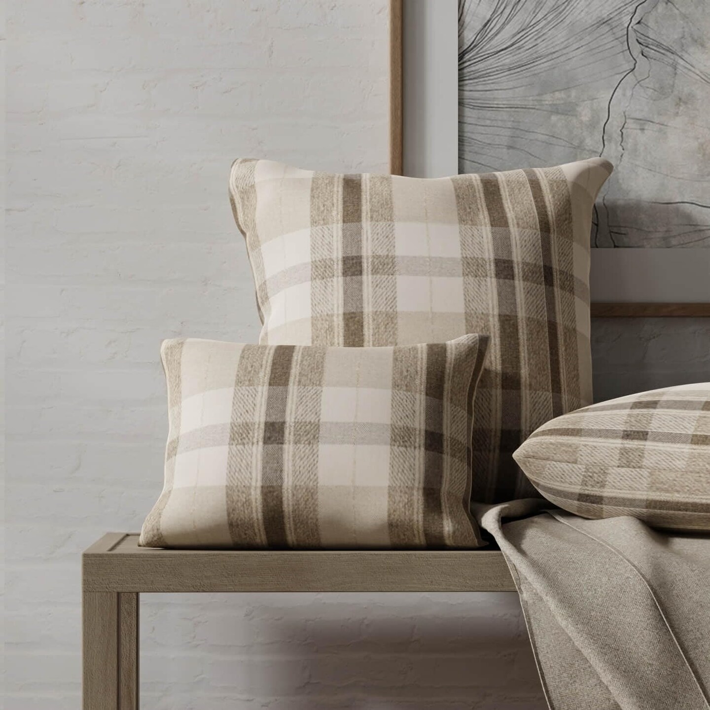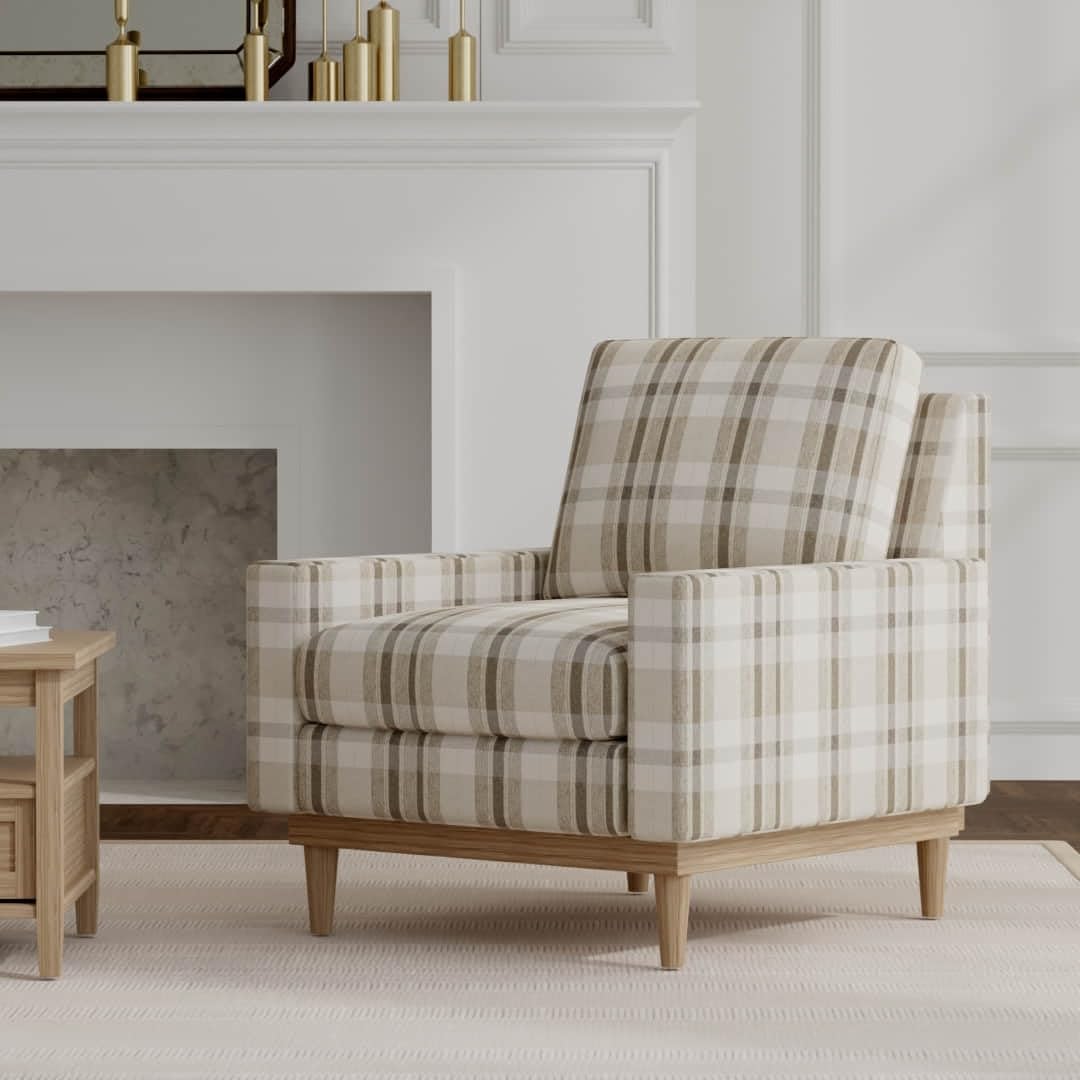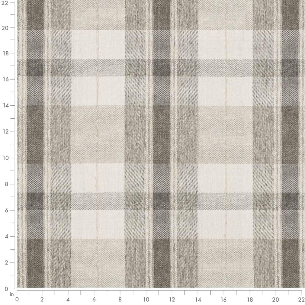 Natural Brown Grey Stain Resistant Performance Pet Friendly Plaid Woven Pattern Upholstery Fabric by The Yard - SKU: Memphis Mushroom