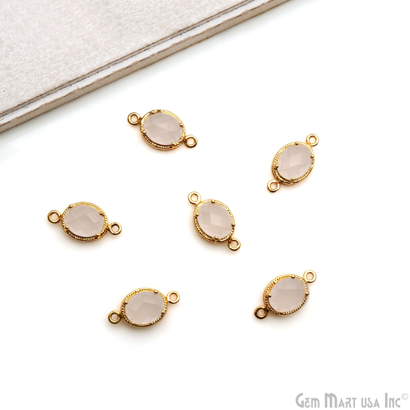 Natural Crystal Oval Gemstone Charms, Birthstone Pendant, 17x10mm Gold Plated Double Bail Bezel Connector 1PC, GemMartUSA (50215)