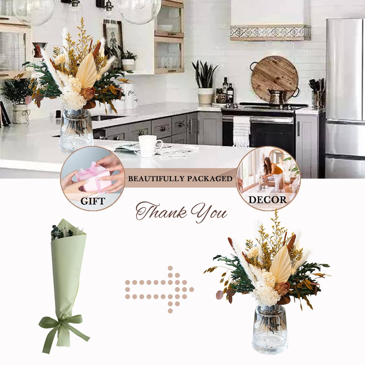 Natural Dried Flower Bouquet - Pampas Grass Decor, Fall Floral Arrangements with Eucalyptus, Plams, Hydrangea, Rustic Bouquet for Vase, Boho Table Centerpiece, Bohemia Home Wedding Decoration