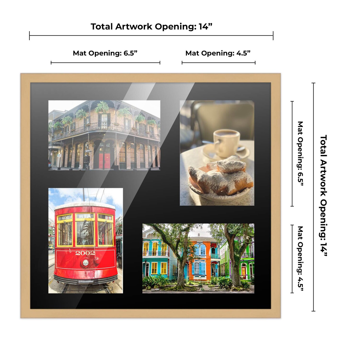 Natural Finish Collage Frame - Black Mat, 20 Frame Sizes to Choose From, UV Acrylic, Wall Hanging Hardware, Vertical or Horizontal Display
