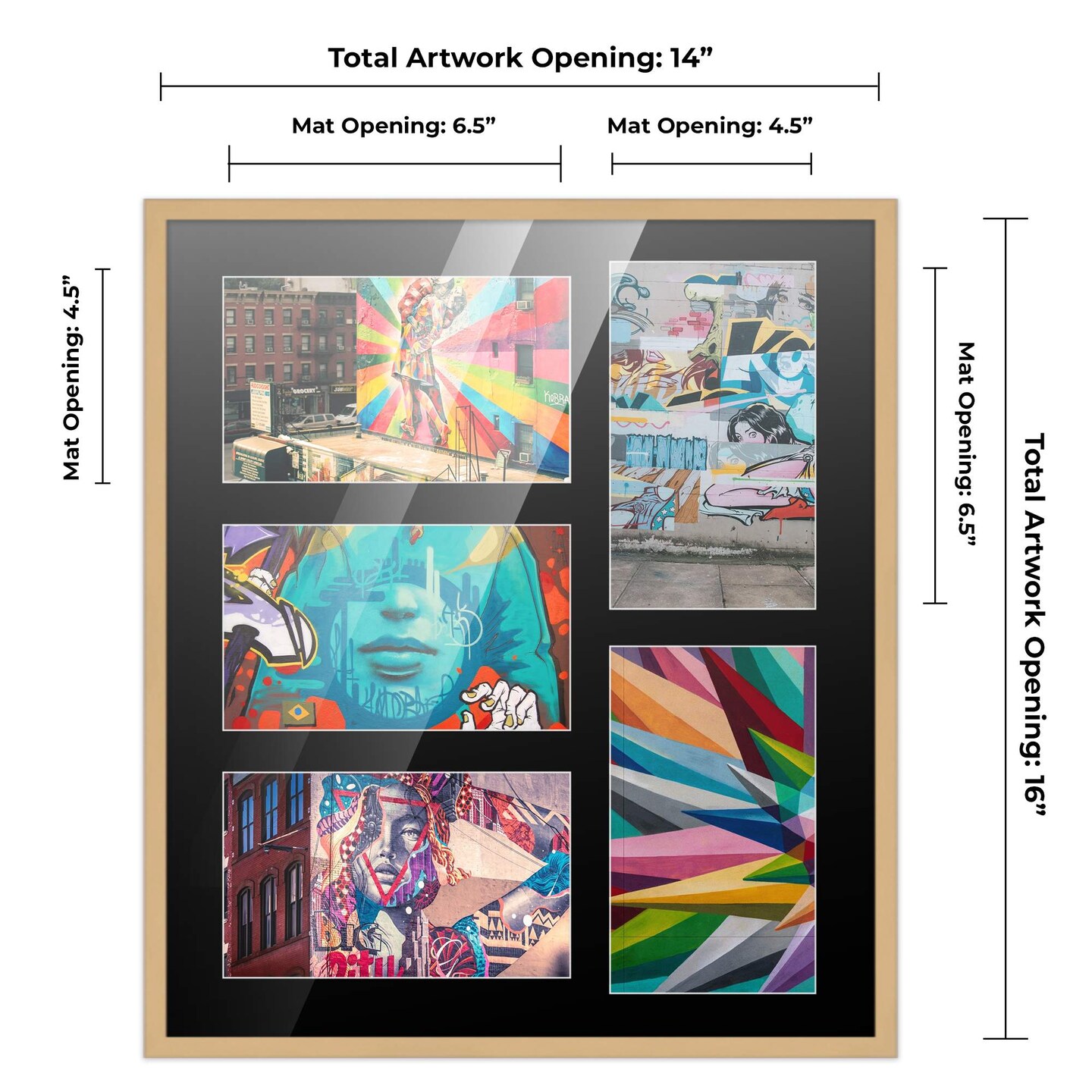 Natural Finish Collage Frame - Black Mat, 20 Frame Sizes to Choose From, UV Acrylic, Wall Hanging Hardware, Vertical or Horizontal Display