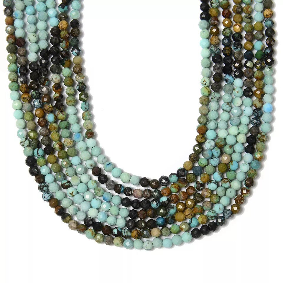 Natural Gradient Turquoise Faceted Round Beads Size 3mm 15.5'' Strand