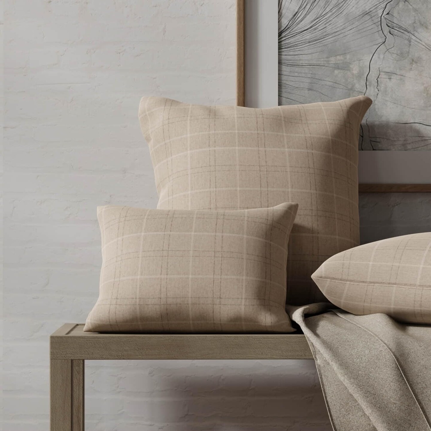 Natural Grey Stain Resistant Performance Pet Friendly Plaid Woven Pattern Upholstery Fabric by The Yard - SKU: Catalina Fog