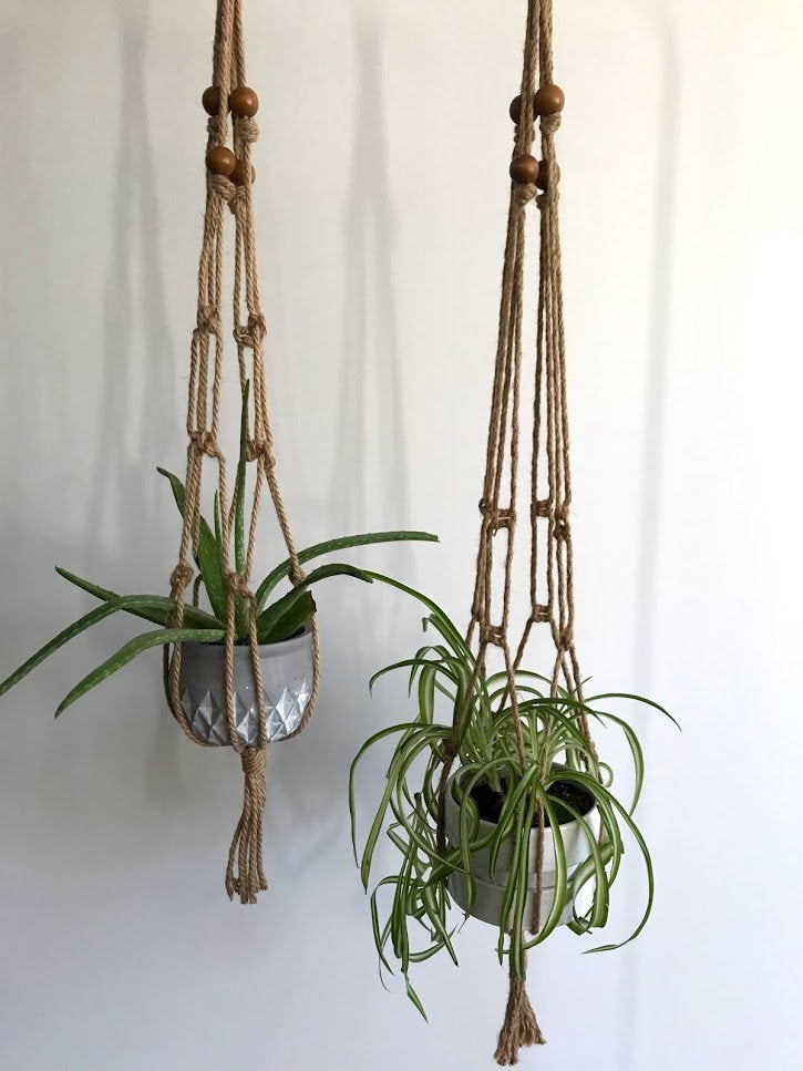 Natural JUTE with Wood Bead Accent Planter